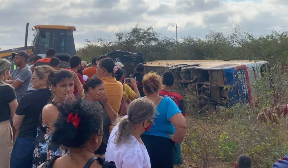 Ônibus com romeiros de Teresina tomba em estrada de Pernambuco