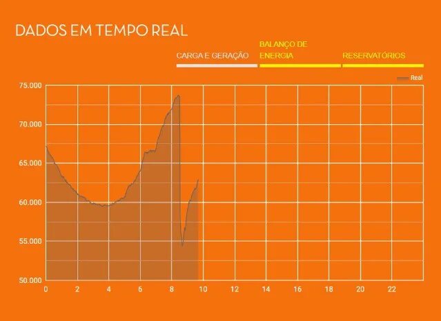 Gráfico do ONS mostra a queda significativa no fornecimento de energia a partir das 8h20 desta terça