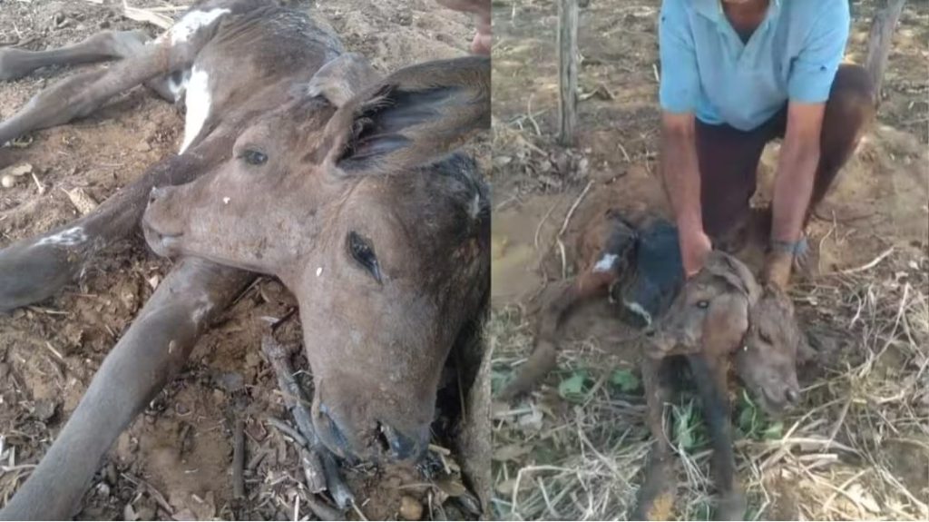 Bezerra nasce com duas cabeças no interior do Piauí; ‘todo mundo assustado e admirado’, relatou produtor — Foto: Reprodução