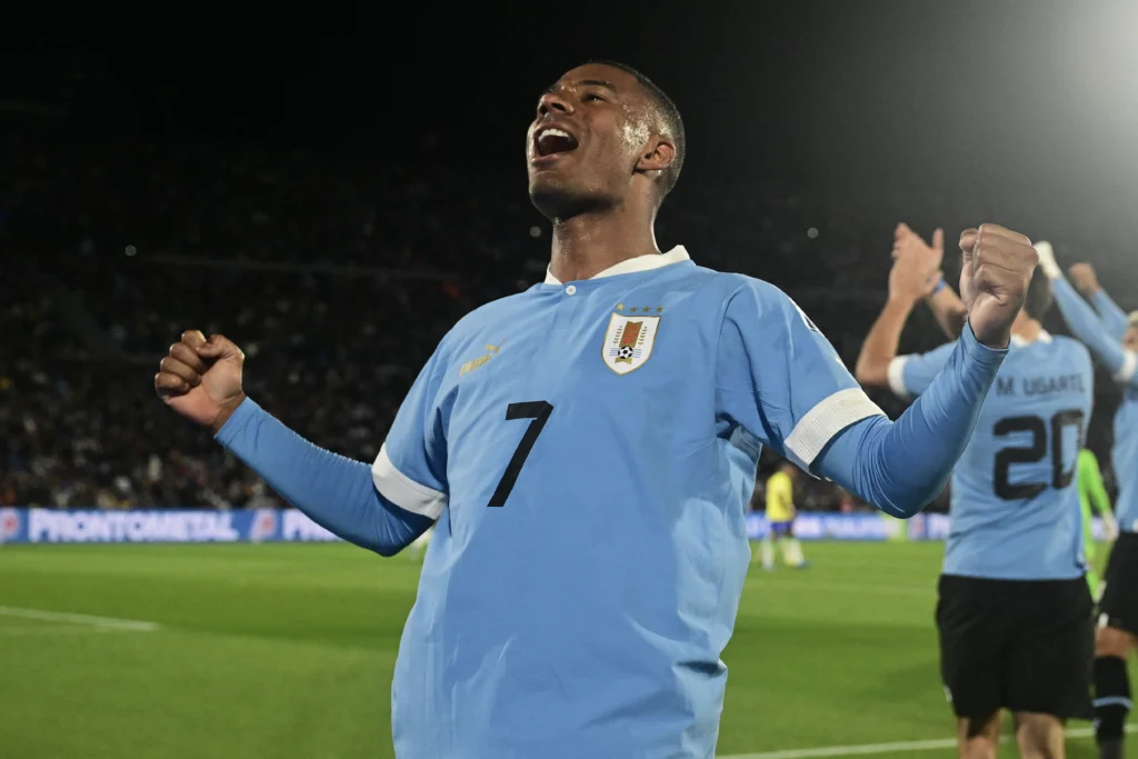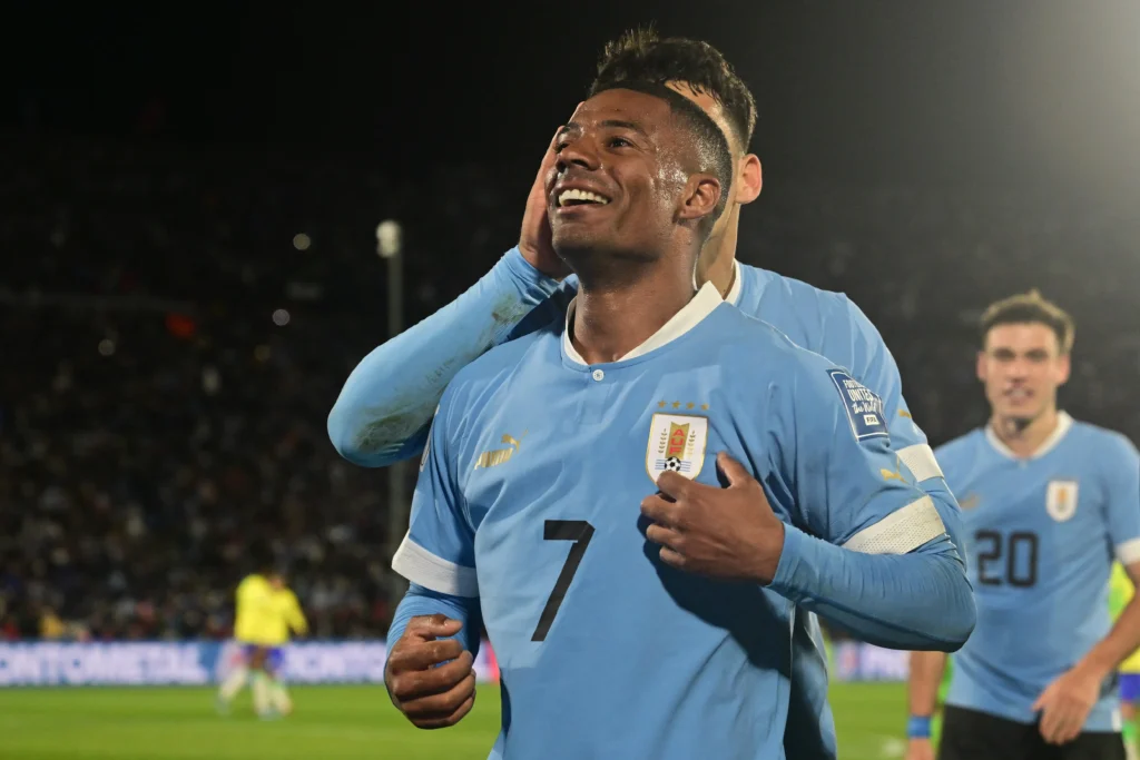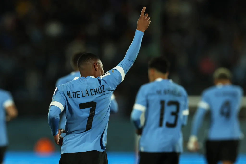 Aos 31, o Uruguai ampliou o placar. O time da casa arremessou lateral para dentro da área, Darwin Núñez fez o pivô, encarou marcação dupla e, na queda, conseguiu servir De la Cruz por dentro. O camisa 7, livre e com o gol aberto, só teve o trabalho de empurrar para as redes: 2 a 0.