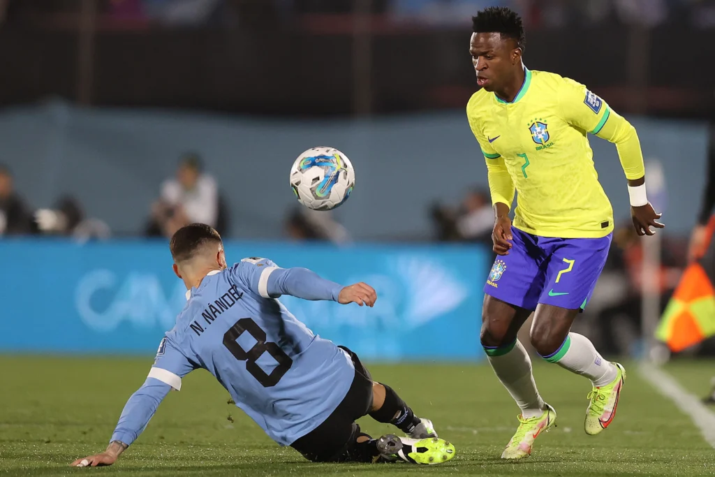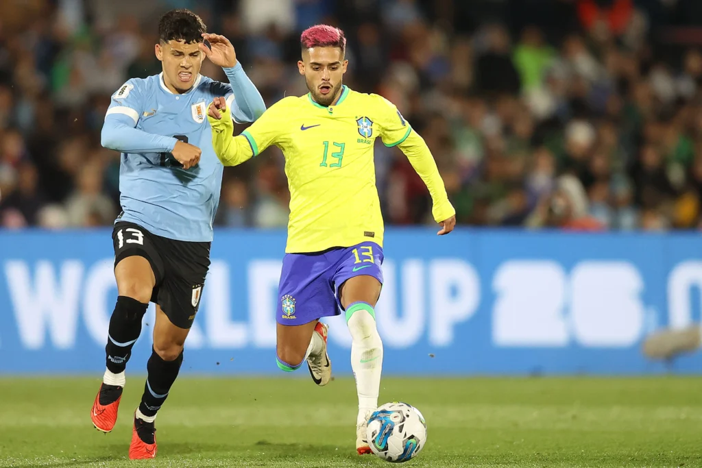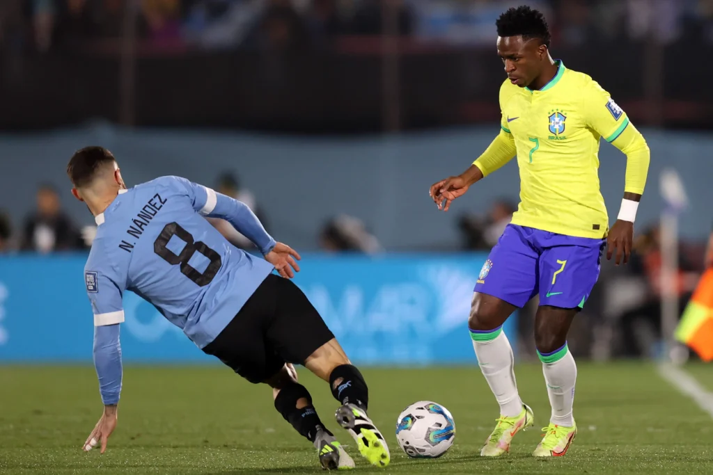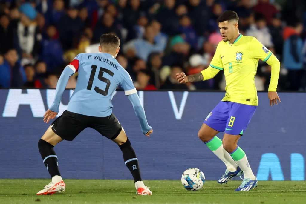 Cartões amarelos: Ronald Araújo, Pablo Quiroga (auxiliar), Darwin Núñez e Nández (Uruguai); Rodrygo, Casemiro, Ederson, Gabriel Jesus e Matheus Cunha (Brasil)