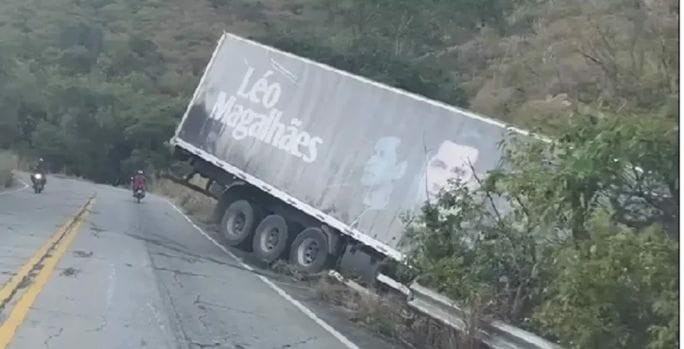 Imagem da carreta tombada na rodovia BA-148 | FOTO: Reprodução