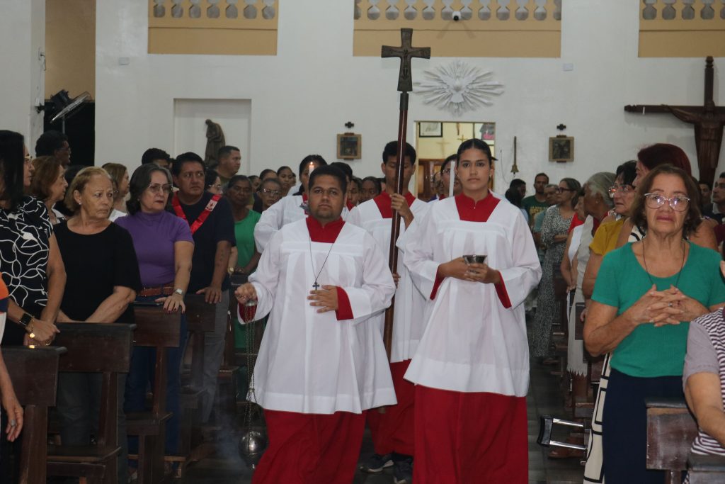 A igreja esteve repleta de fiéis, que se uniram em oração e reflexão, enquanto a missa foi transmitida ao vivo pelas redes sociais da paróquia, permitindo que mais pessoas participassem desse momento especial.