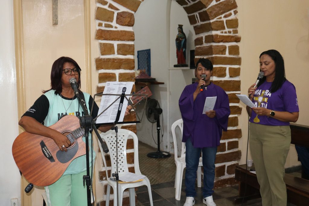 A celebração contou com a animação musical de Walterlânia, Jodelson e Mônica Ribeiro, que entoaram cânticos quaresmais, trazendo um ambiente de espiritualidade e comunhão.