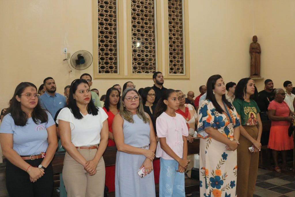 Antes da bênção final, o padre convidou os aniversariantes do dia—Eliane Vieira, Serviana Katarina e Evilasio Mariano—para subirem ao presbitério, onde foram homenageados com o canto de “Parabéns”, celebrando não apenas a vida, mas também a união da comunidade em torno da fé e da fraternidade.