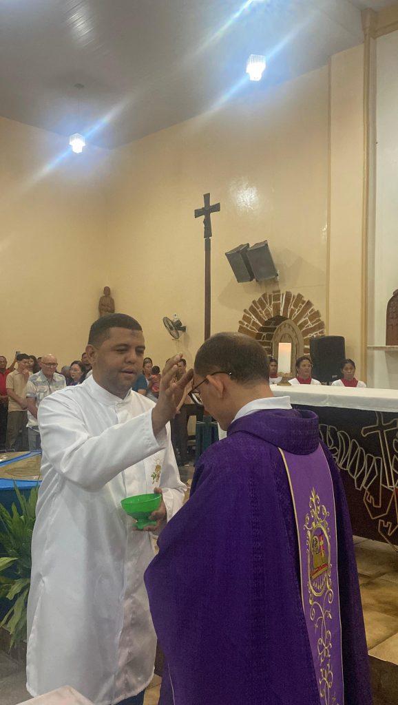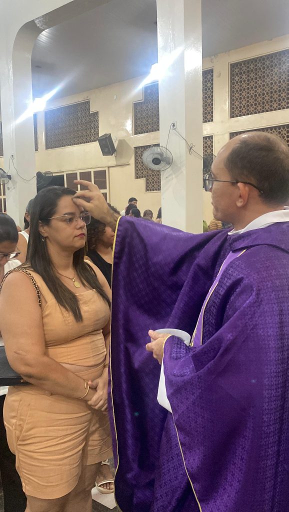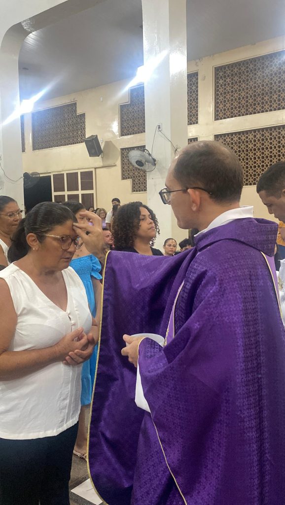 Após a homilia, Padre Welson abençoou as cinzas, que foram aplicadas na testa e na cabeça dos presentes, simbolizando o início da Quaresma, período de oração e penitência.