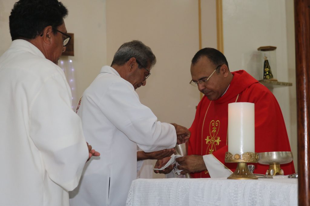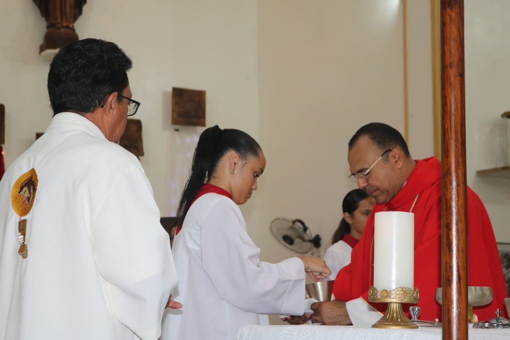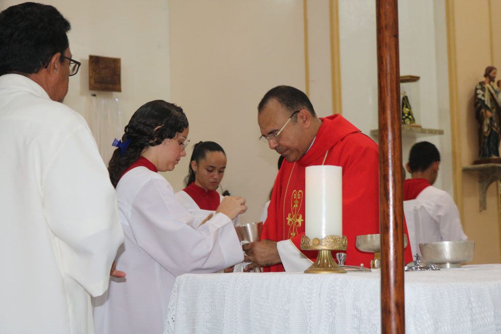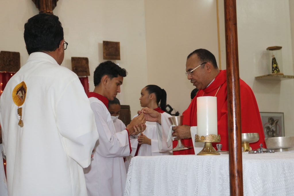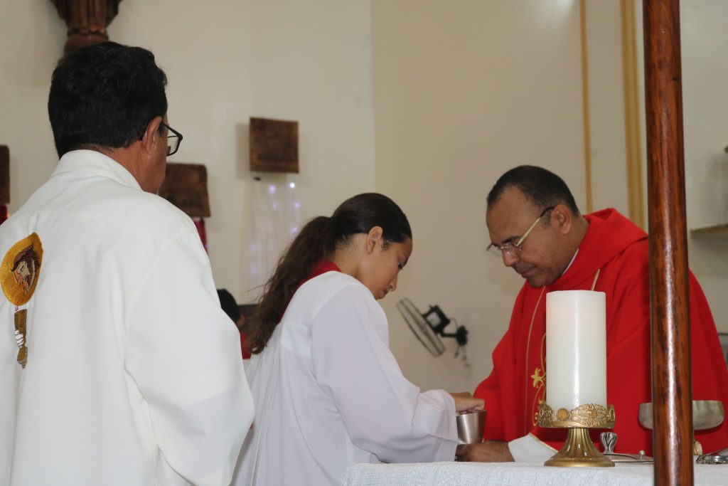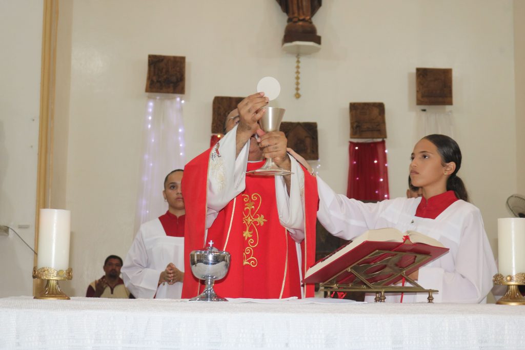 Em um gesto de devoção mariana, o jovem José Antônio percorreu solenemente a igreja com a imagem de Nossa Senhora de Fátima, enquanto o jovem Júnior entoava cânticos dedicados à Virgem Maria. Essa demonstração de amor e veneração à Mãe de Deus emocionou os fiéis, fortalecendo ainda mais a sua fé.
