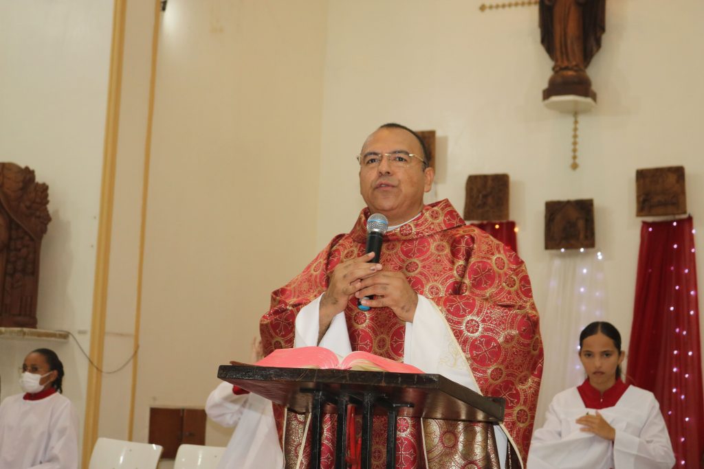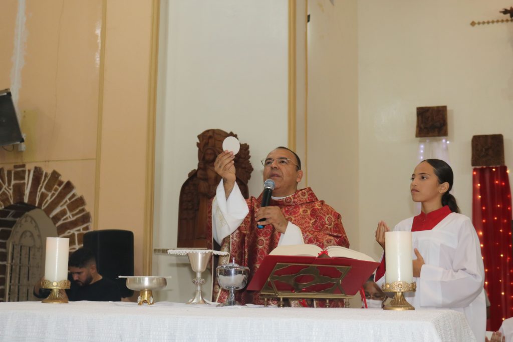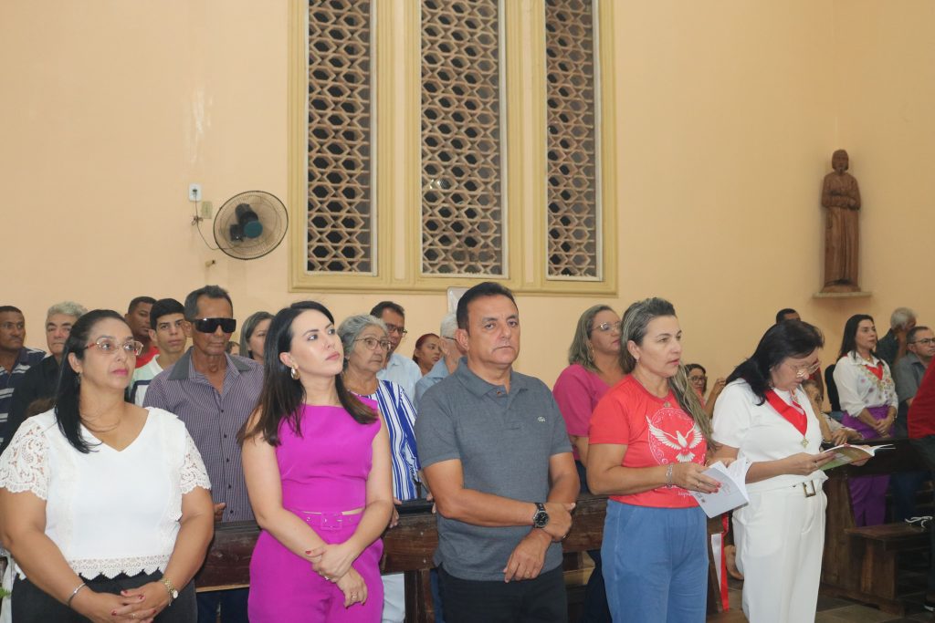 A procissão de entrada foi um espetáculo de fé e tradição, com a imagem do Divino e a bandeira, acompanhadas por lamparinas acesas e um quadro com a foto dos saudosos pais, Rubim e Luzia, em memória das filhas que lideram a organização da festa. Crianças, coroinhas, ministros e o celebrante seguiram em comunhão, refletindo a unidade e a devoção da comunidade.