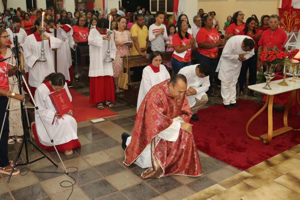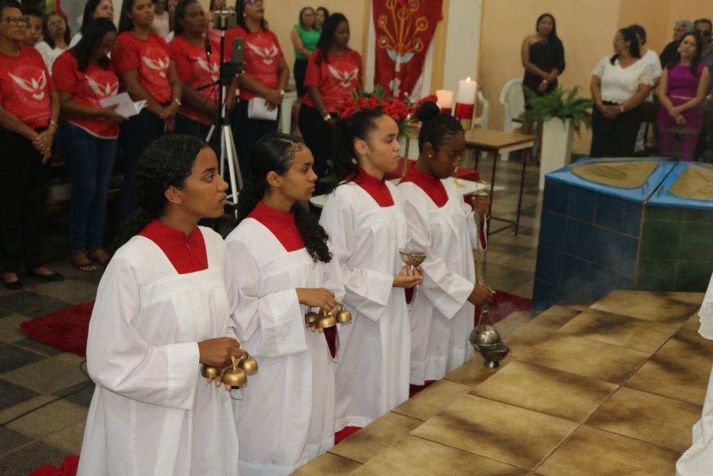 O coração da liturgia pulsou ao som do canto Kyrie Eleison, marcando o momento de reflexão e arrependimento diante do Divino. O tema do festejo, “Enviai o Vosso Espírito Senhor e da Terra Toda a Face Renovai”, ecoou nos corações dos presentes, inspirando esperança e renovação espiritual.