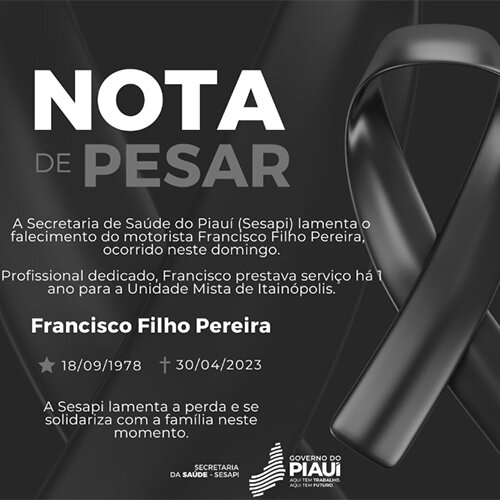 A Secretaria de Saúde do Piauí (Sesapi) divulgou uma nota lamentando o falecimento do motorista Francisco Filho Pereira.