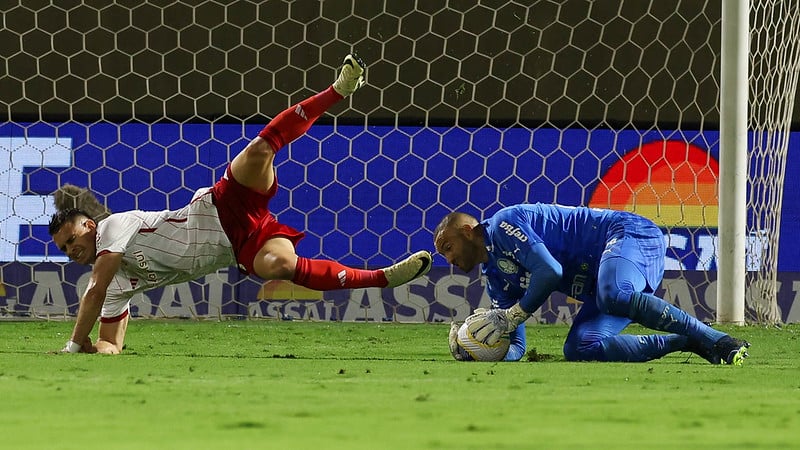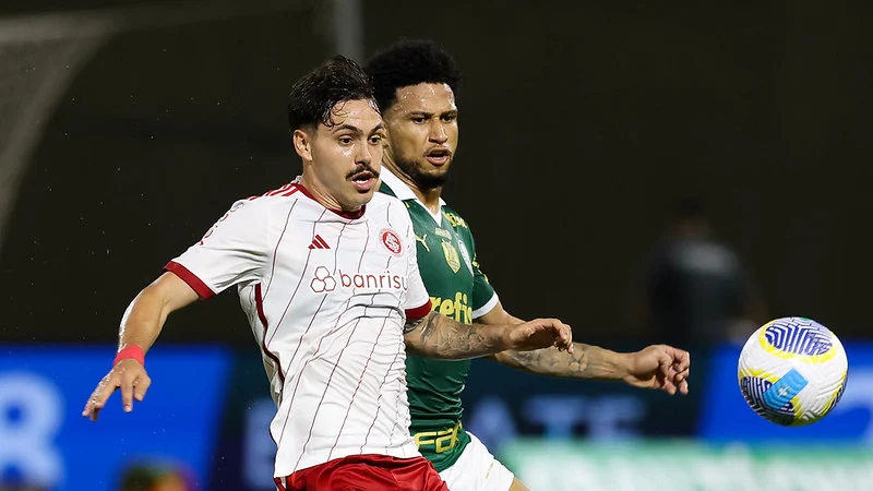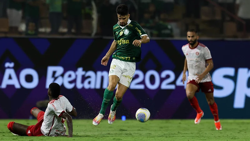 O Palmeiras teve boa chance de abrir o placar aos 23. Endrick fez boa jogada, com direito a chapéu em cima de Thiago Maia, serviu Lázaro, que escorou para Veiga, já dentro da área. O camisa 23, porém finalizou pelo lado de fora. Aos 38, Mayke tabelou com Endrick, invadiu a área e tocou para Flaco López. O argentino não conseguiu finalizar e viu a defesa do Inter afastar. O Inter abriu o placar aos 44 minutos. Borré recuperou a bola de Piquerez no campo de ataque e tocou para Wesley, ex-Palmeiras, que bateu cruzado e balançou as redes, fazendo valer a lei do ex. Nos acréscimos, Borré cabeceou com perigo e a bola foi para fora.