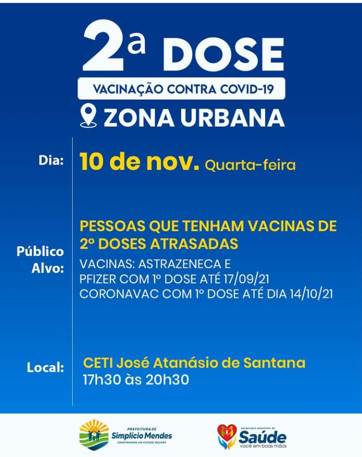 Cronograma de Vacinação na Zona Urbana de Simplício Mendes