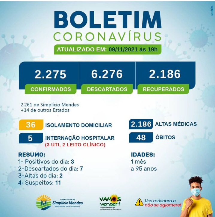 Mantendo a população informada a Secretaria Municipal de Saúde da Prefeitura de Simplício Mendes divulgou o boletim epidemiológico atualizado desta terça-feira (09).