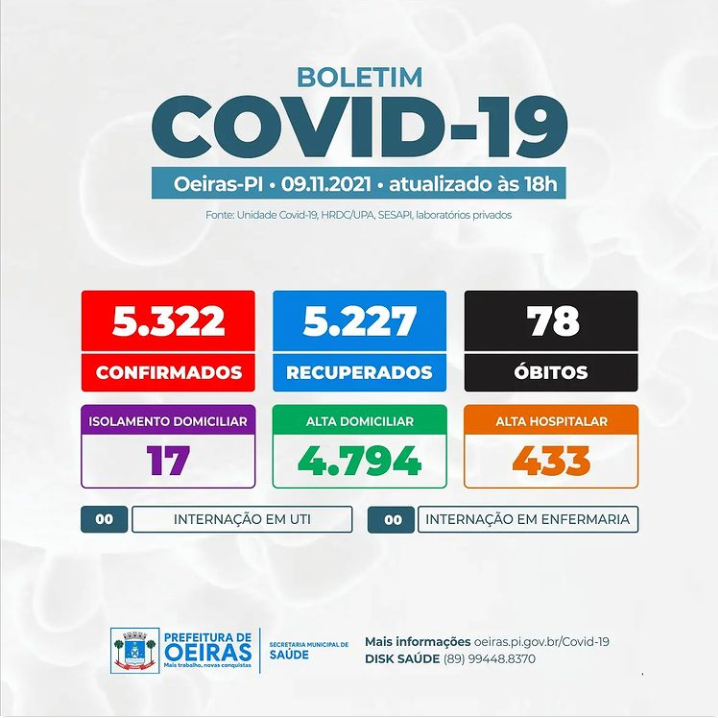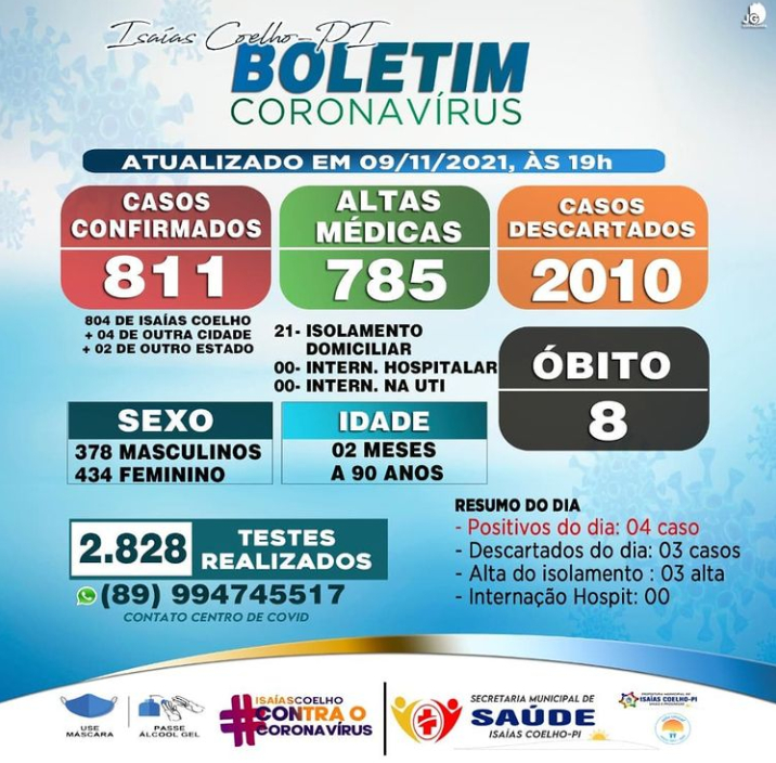 Acompanhe aqui o boletim epidemiológico diário de Simplício Mendes e de outros municípios.