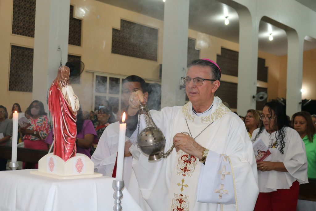 O bispo da Diocese de Oeiras, Dom Edilson Soares Nobre presidiu a missa no quarto dia da novena do Sagrado Coração de Jesus, padroeiro de Simplício Mendes na noite deste sábado (25).