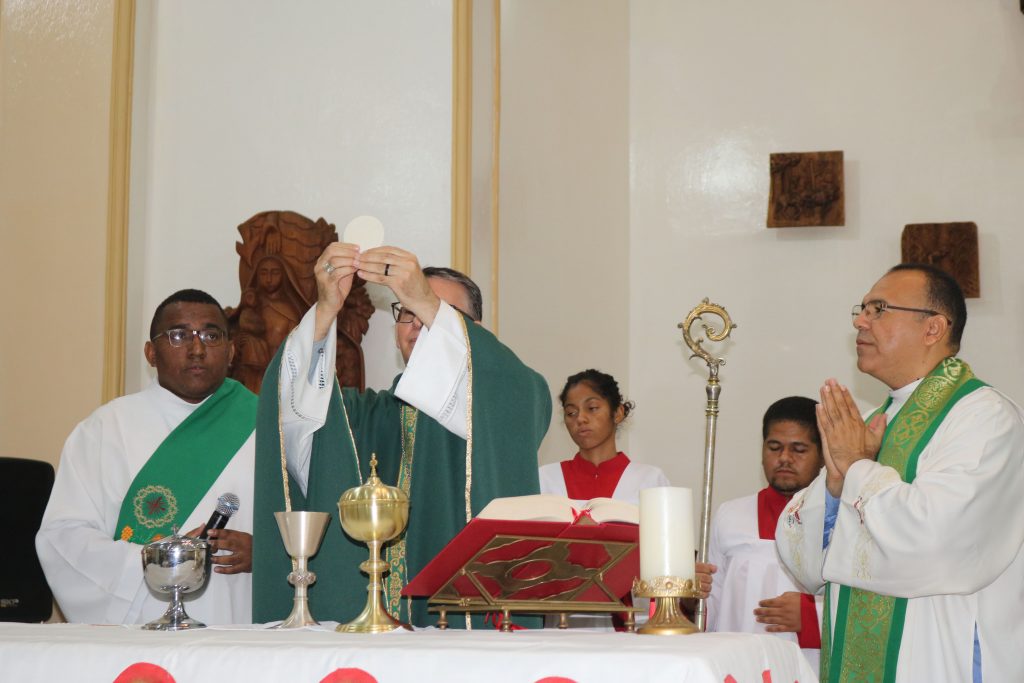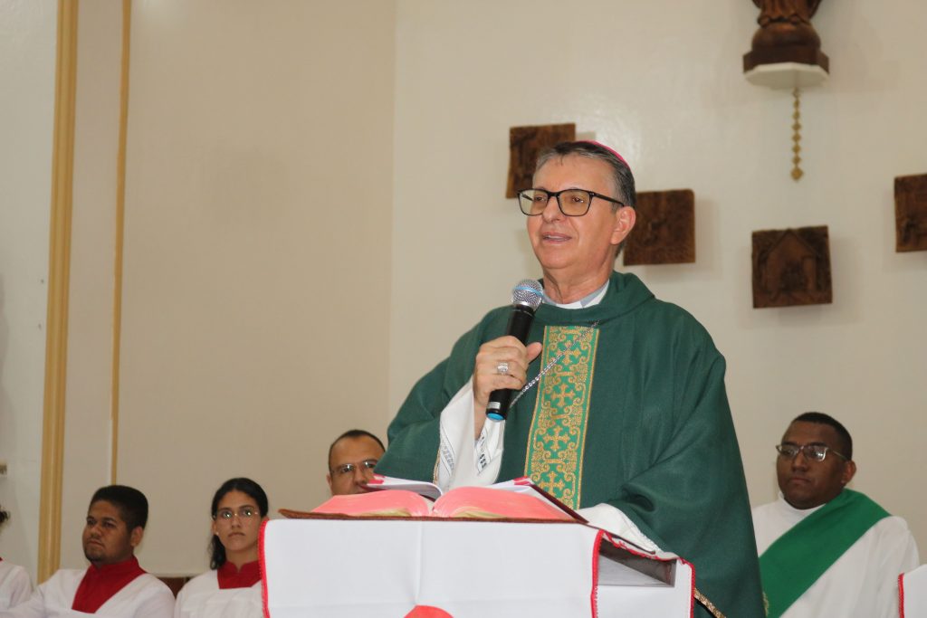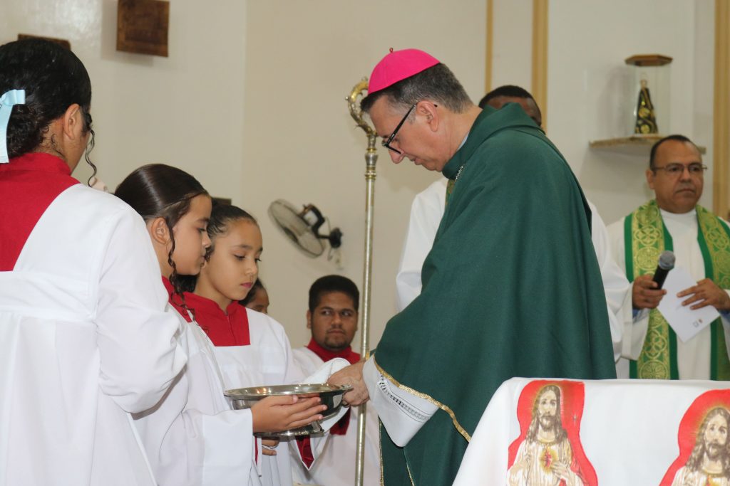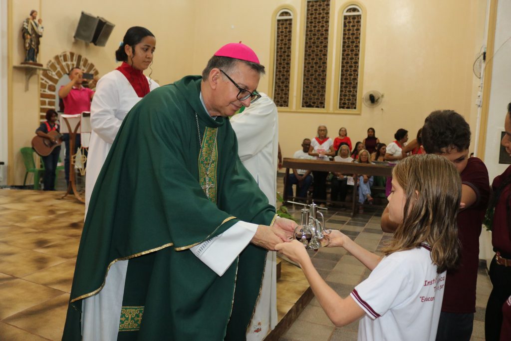O Diácono Thássio Kalil foi responsável por proclamar o evangelho da noite, seguido por uma inspiradora homilia proferida por Dom Edilson. O momento do ofertório teve uma participação especial: crianças do Instituto Educacional Turma da Mônica levaram o cálice e as galhetas, entregando-os ao bispo em um gesto simbólico de pureza e devoção.