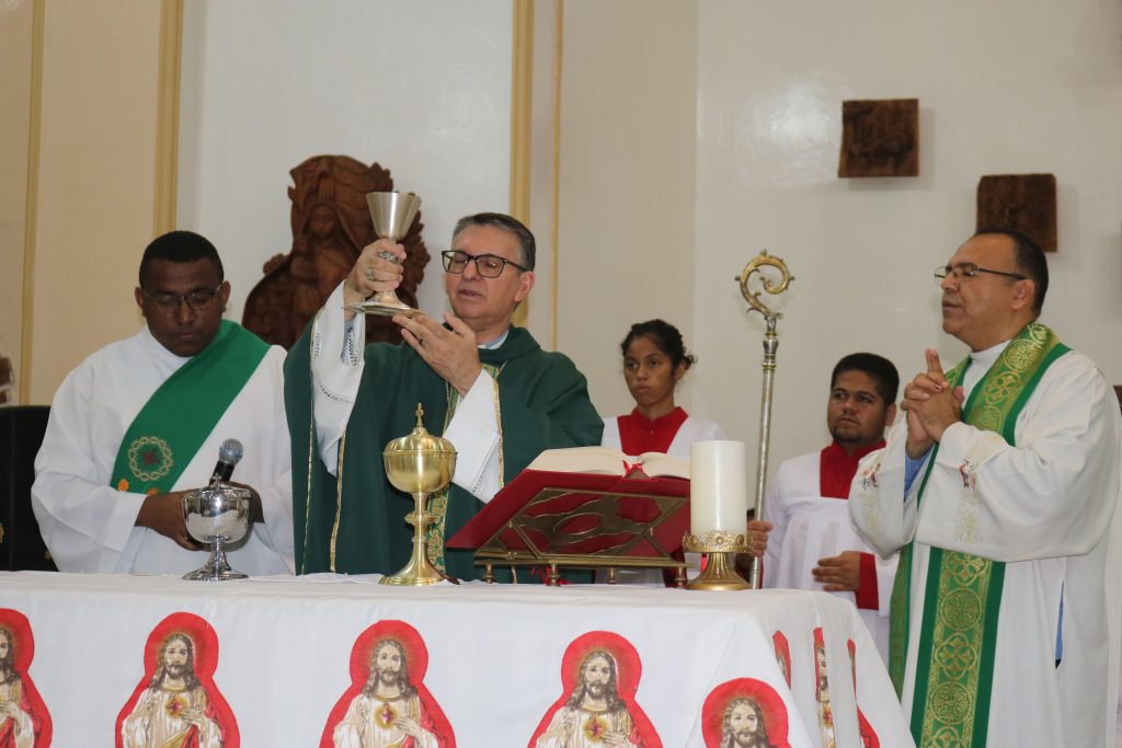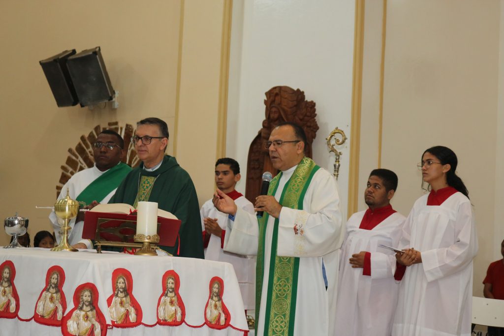 Na noite deste sábado, 22 de junho, a comunidade católica de Simplício Mendes se reuniu na igreja matriz para celebrar a segunda noite da novena do Sagrado Coração de Jesus, padroeiro da cidade. A celebração eucarística foi presidida pelo bispo Dom Edilson Soares Nobre e concelebrada pelo Padre Kleyton Vieira e o Diácono Thássio Kalil, contando com a participação fervorosa de muitos fiéis.