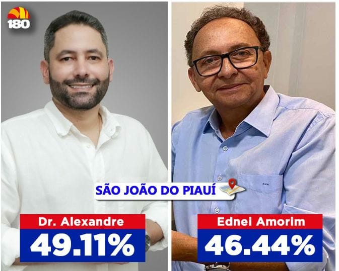 O Instituto Premier realizou uma pesquisa eleitoral entre os dias 30 de junho e 1º de julho de 2024 no município de São João do Piauí, que está sendo divulgada em primeira mão pelo Portal 180graus. Segundo o levantamento, Dr. Alexandre lidera com 49.11% das intenções de voto. O atual prefeito e pré-candidato à reeleição, Ednei Amorim, aparece com 46.44%, enquanto 4.44% dos entrevistados não souberam ou não opinaram.