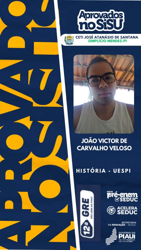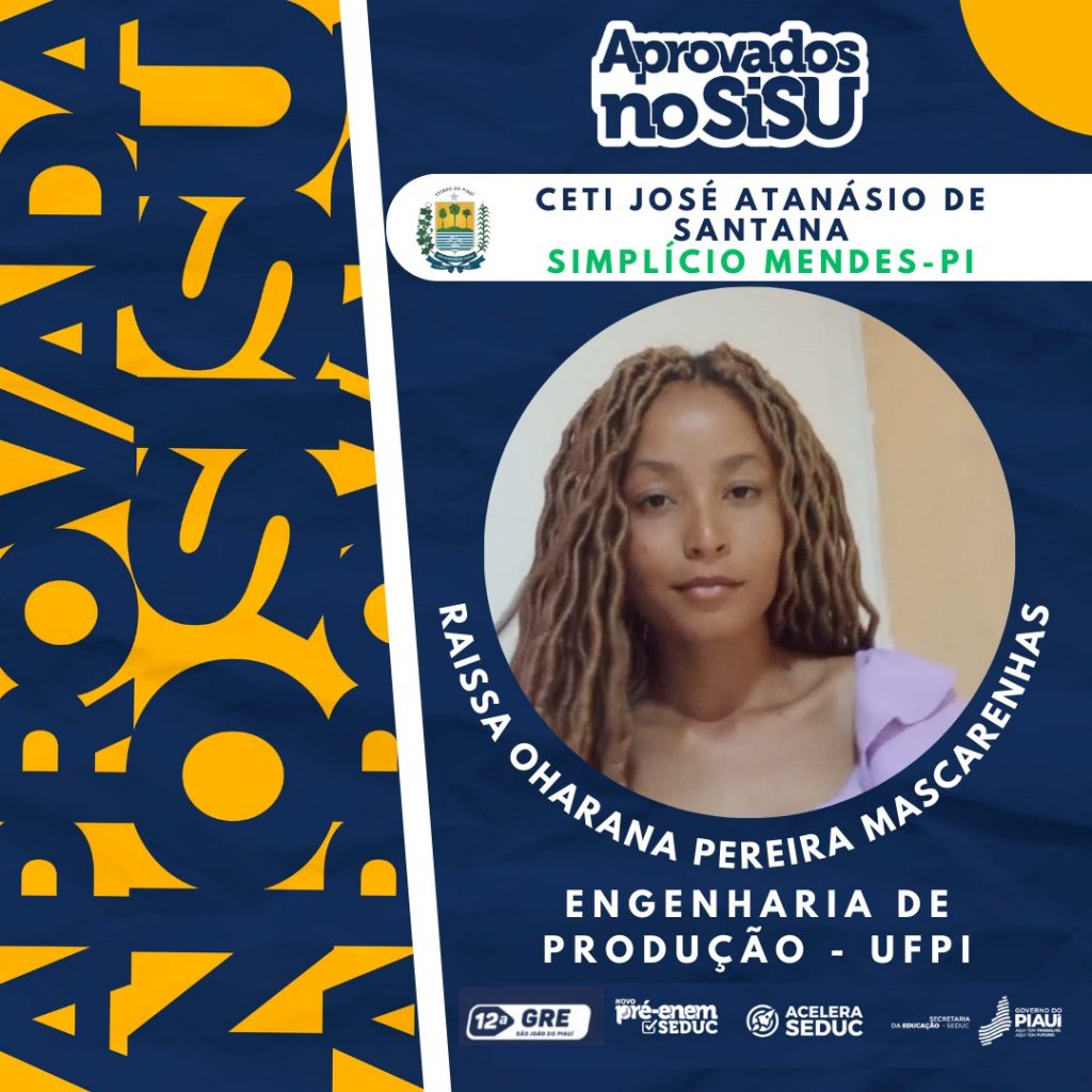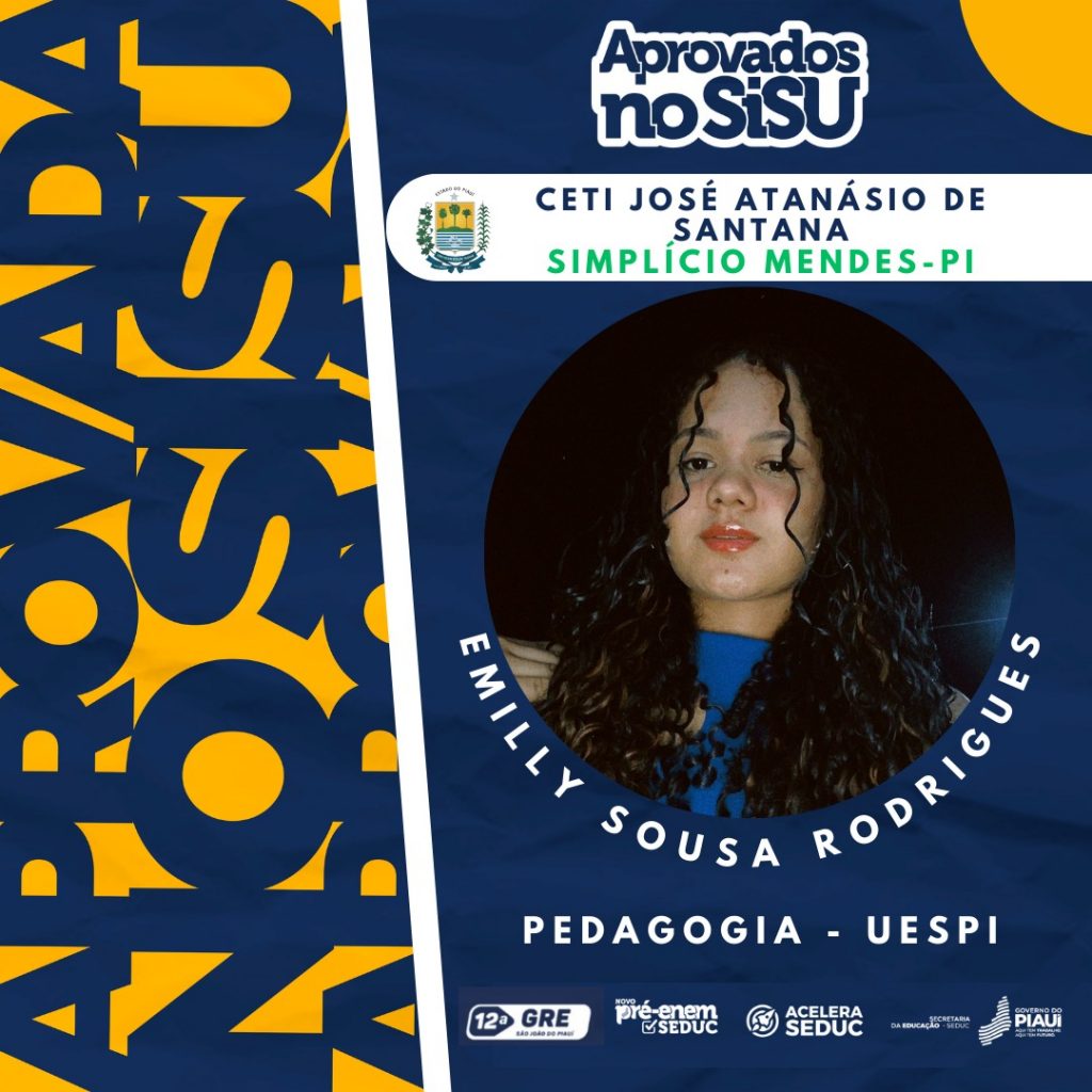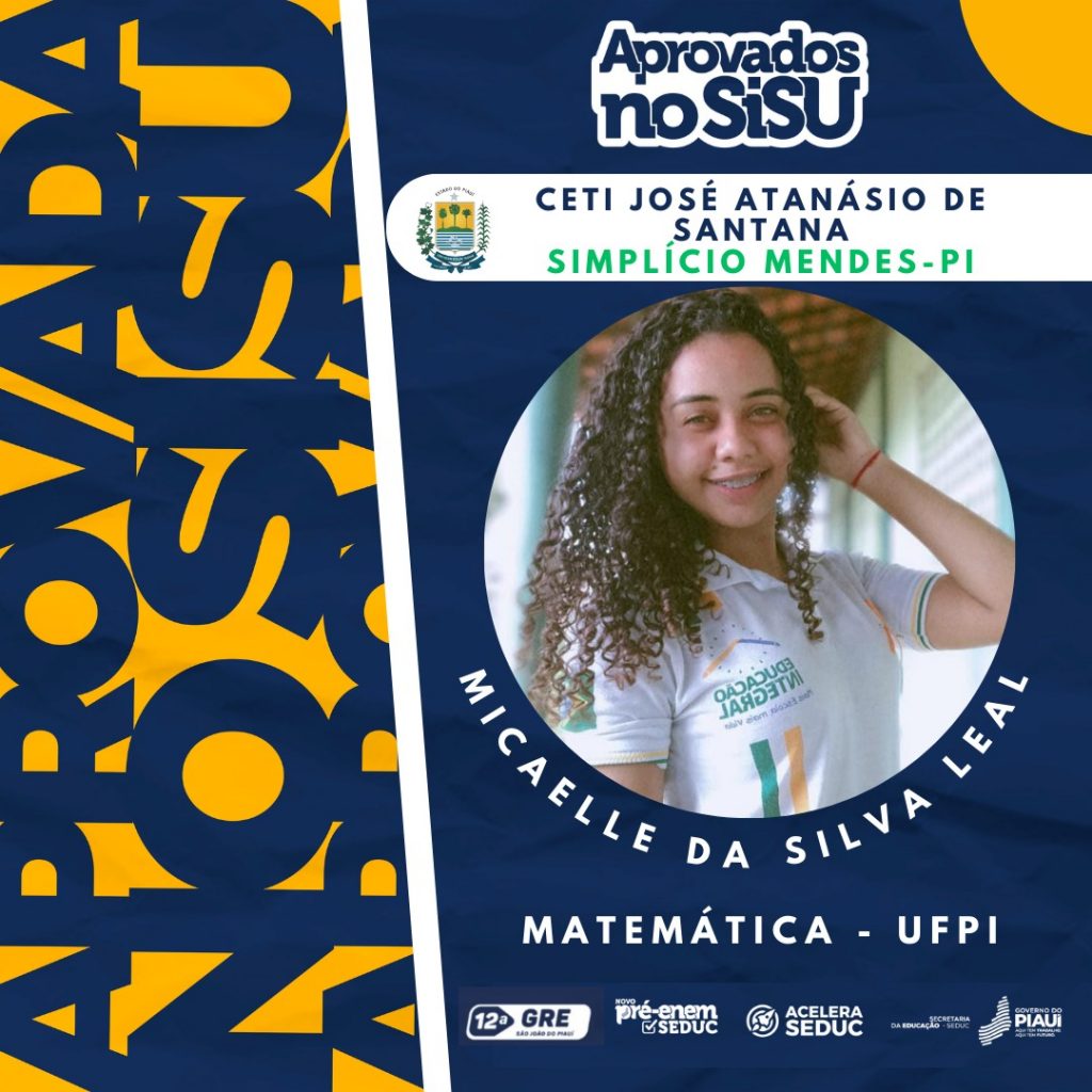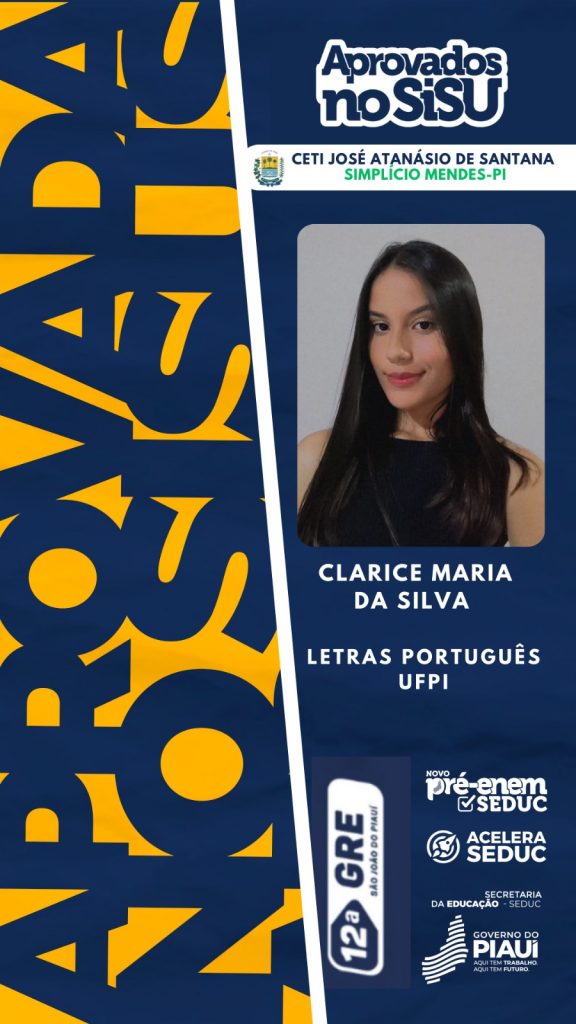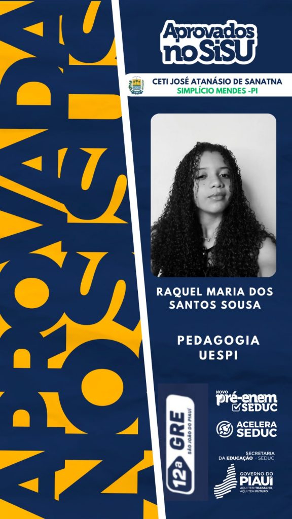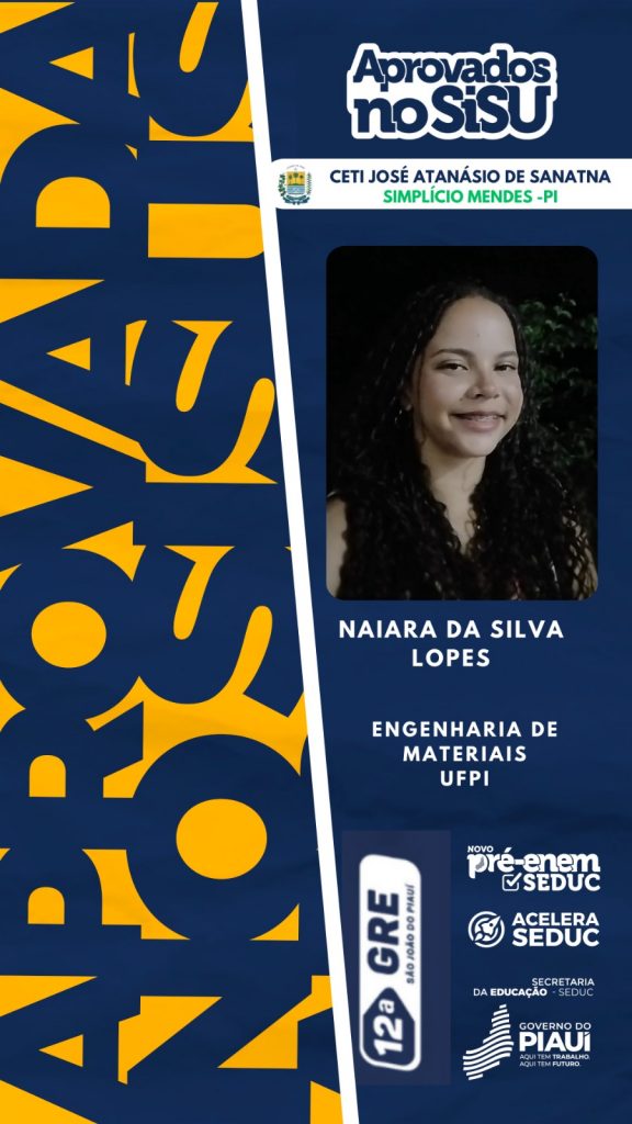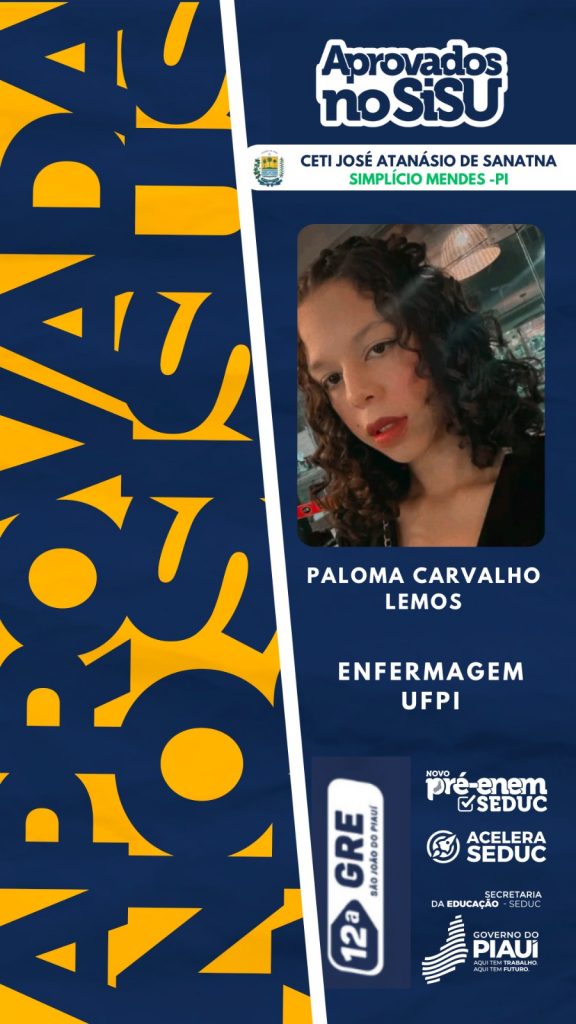 Emilly foi aprovada para o curso de Pedagogia na UESPI em Picos, assim como Raquel. Clarice conquistou sua aprovação no curso de Letras Português na UFPI de Picos. Já Raissa foi aprovada para o curso de Engenharia de Produção na UFPI, localizada em Teresina. Naiara também recebeu uma excelente notícia ao ser aprovada em Engenharia de Materiais na UFPI em Teresina. João Victor obteve aprovação no curso de História na UESPI em Oeiras. Paloma foi aprovada no curso de Enfermagem na UFPI em Picos. Micaelle conquistou sua vaga no curso de Matemática na UFPI em Picos. Por fim, Jonathas também foi aprovado em Letras Português na UFPI.