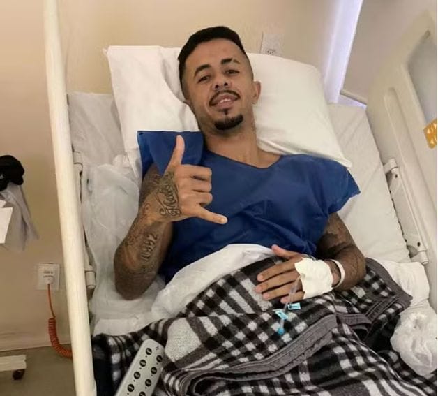 Kelvin, ex-lateral-direito do Bangu, após passar por cirurgia no joelho — Foto: Arquivo Pessoal