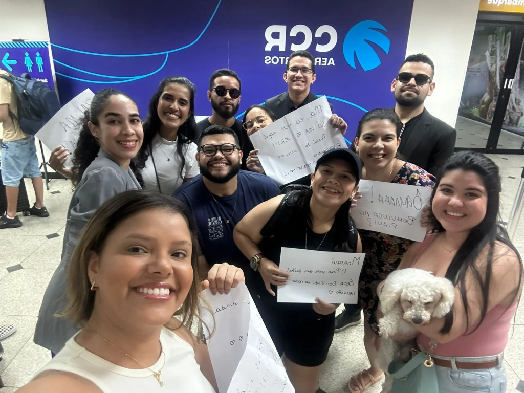 Ao MeioNorte.com, Lorena explicou que estava chegando de viagem por volta de 1h da madrugada desta sexta-feira (05) e sabia apenas que uma pessoa iria buscá-la, no entanto foi surpreendida com o ato inusitado. Amigos caracterizados de segurança, amigas com plaquinhas de: “Piauí te ama”, “ Má (apelido da influencer) , vim aqui só pra te ver”, fizeram parte do espetáculo.