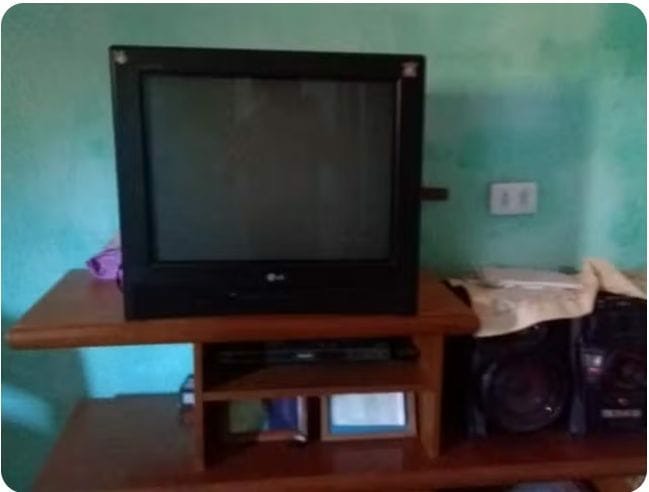 A televisão de Dona Aldenir tem 13 anos e nunca foi ligada. — Foto: Reprodução