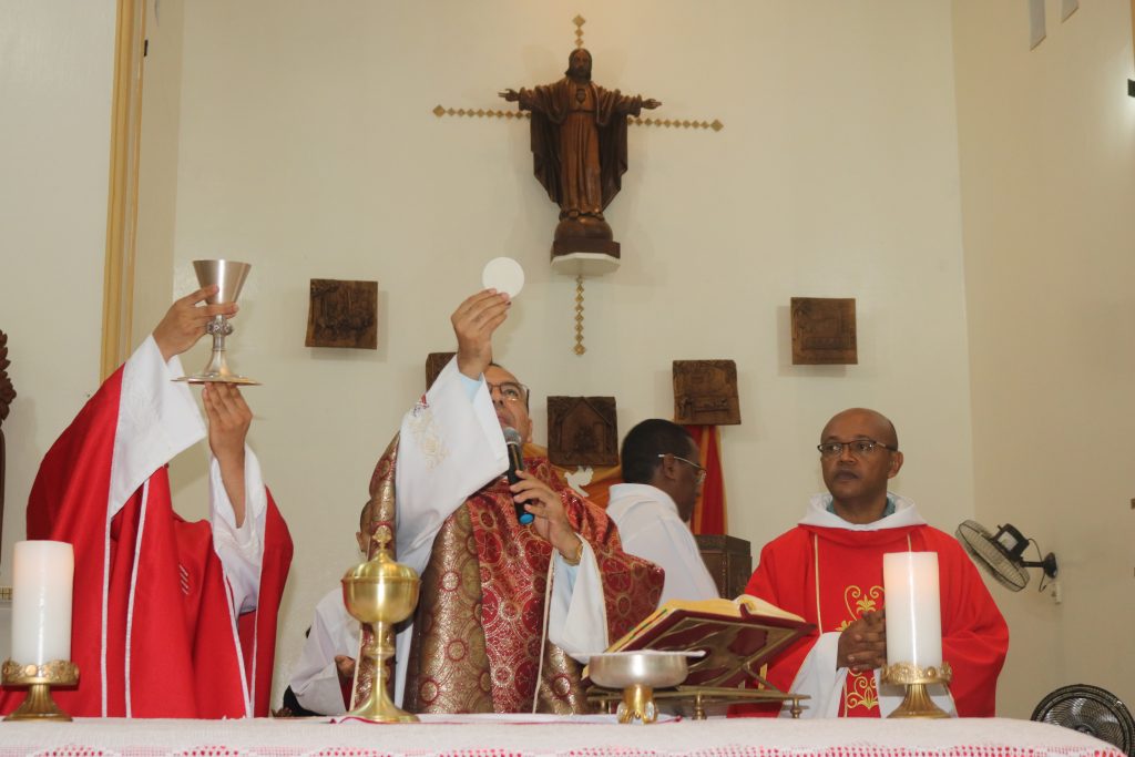 A missa foi presidida pelo Pároco, Padre Kleyton Vieira, e concelebrada pelo Vigário Paroquial, Padre Wellington Rodrigues, Padre Carlindo Ribeiro de Nova Santa Rita do Piauí.