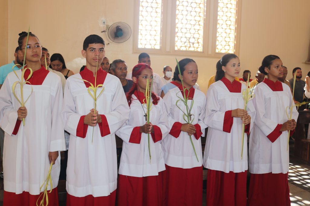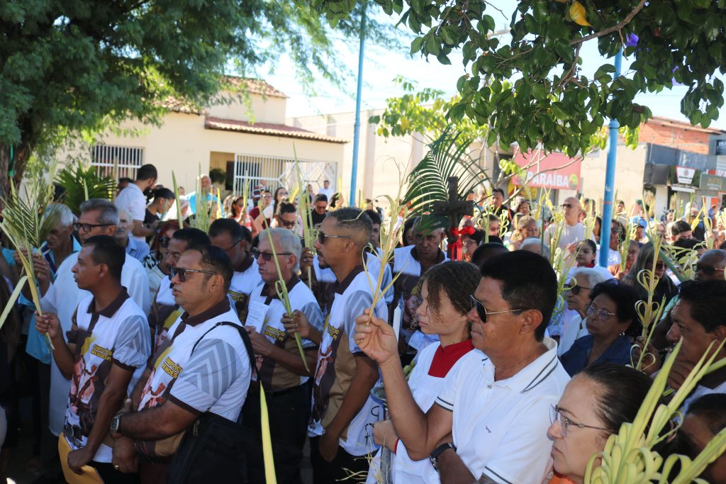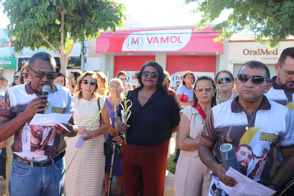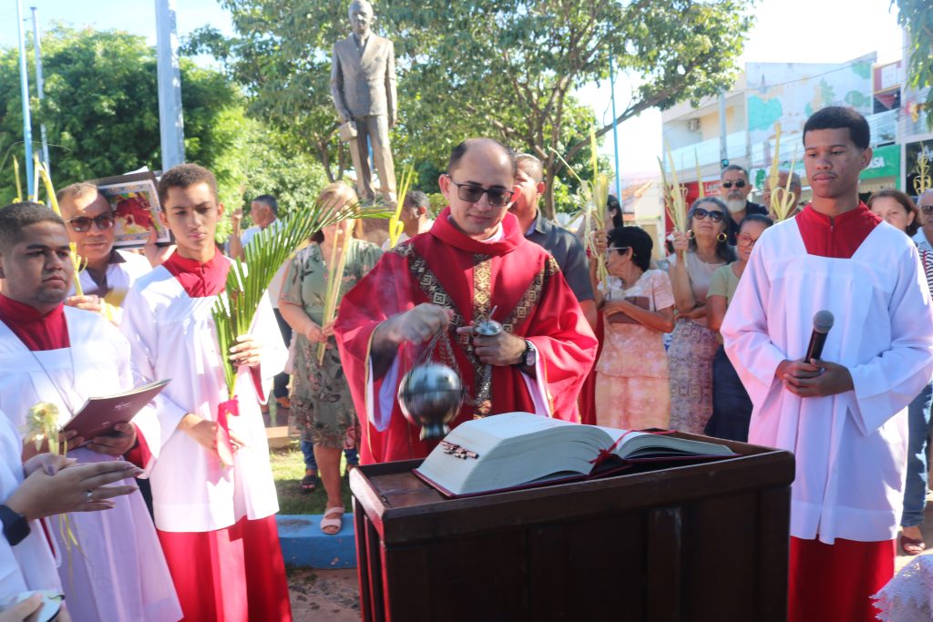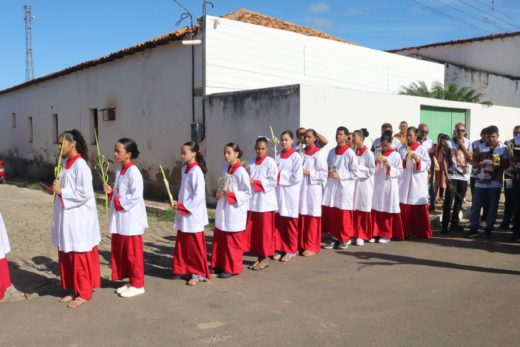 Por volta das 8h, os fiéis se concentraram na Praça Dr. Isaías Coelho, onde o padre Welson Barbosa realizou a bênção dos ramos, relembrando a entrada triunfal de Jesus em Jerusalém. Em seguida, o sacerdote, coroinhas e a multidão de fiéis seguiram em procissão até a Igreja Matriz do Sagrado Coração de Jesus.