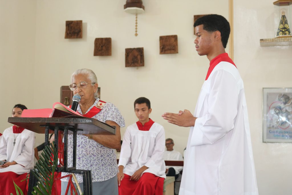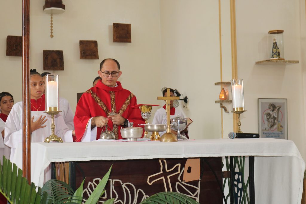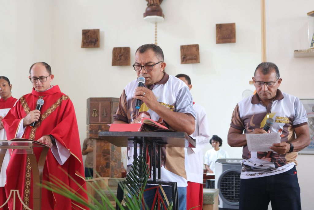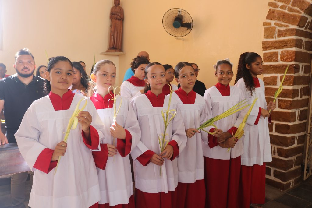 A liturgia foi marcada pela leitura da Paixão de Cristo, seguida da homilia do padre Welson, conduzindo os fiéis à reflexão sobre o significado deste tempo litúrgico. A missa prosseguiu dentro do rito tradicional da Igreja.