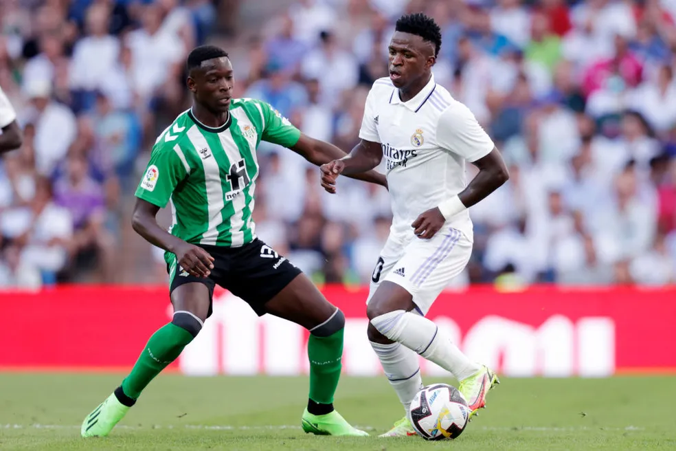 Luiz Henrique e Vinícius Junior em Real Madrid x Real Betis, no Santiago Bernabéu — Foto: Getty Images