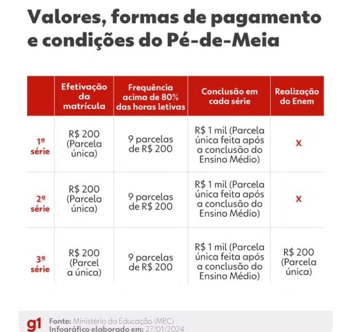 Governo detalha valores do Programa Pé de Meia, auxílio financeiro a alunos de ensino médio público. — Foto: Reprodução