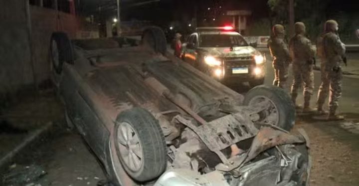 Homem troca tiros com a polícia, capota carro roubado e é preso durante perseguição