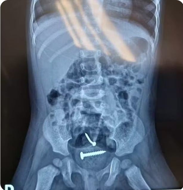 Médicos encontram parafusos dentro de criança suspeita de sido violentada pelo pai no Piauí — Foto: Divulgação/PM-PI