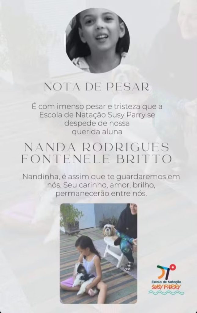 O HEDA, a clínica da família da criança e a escola de natação que ela frequentava publicaram notas de pesar nas redes sociais. Veja trechos: