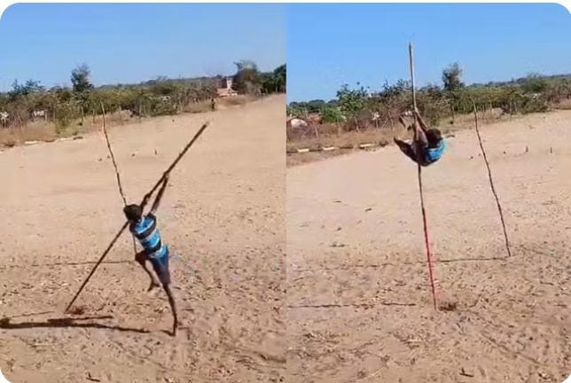 Garoto de 13 anos viraliza ao treinar salto com vara com materiais improvisados