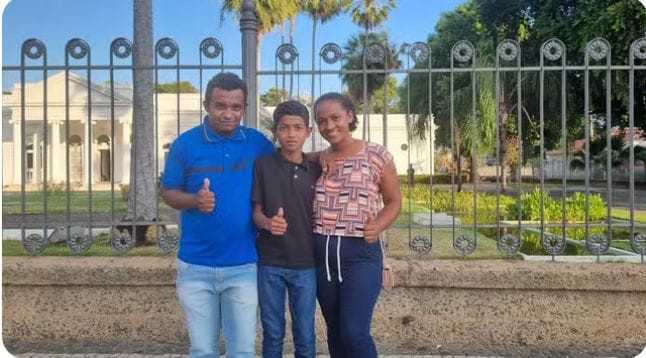 Moisés e os pais no Palácio de Karnak – Menino que viralizou treinando salto com vara com material improvisado tem reunião com governador: ‘prometeu equipamentos e um lugar apropriado’ — Foto: Pedro Lima/g1 Piauí