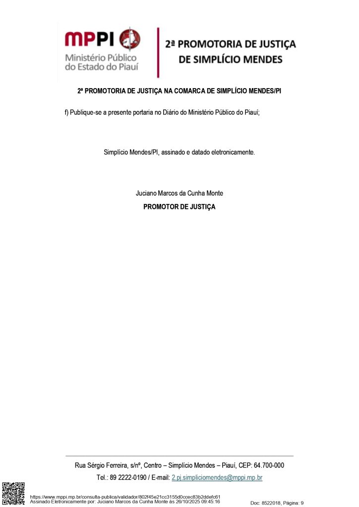 Para Mais Informações, a População Pode Entrar em Contato Com a 2ª Promotoria de Justiça de Simplício Mendes.