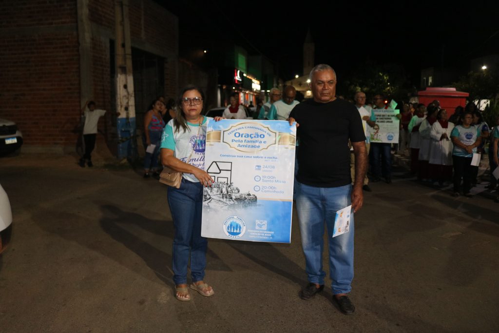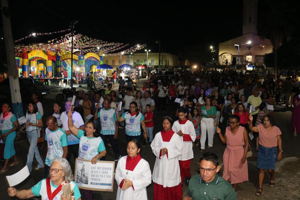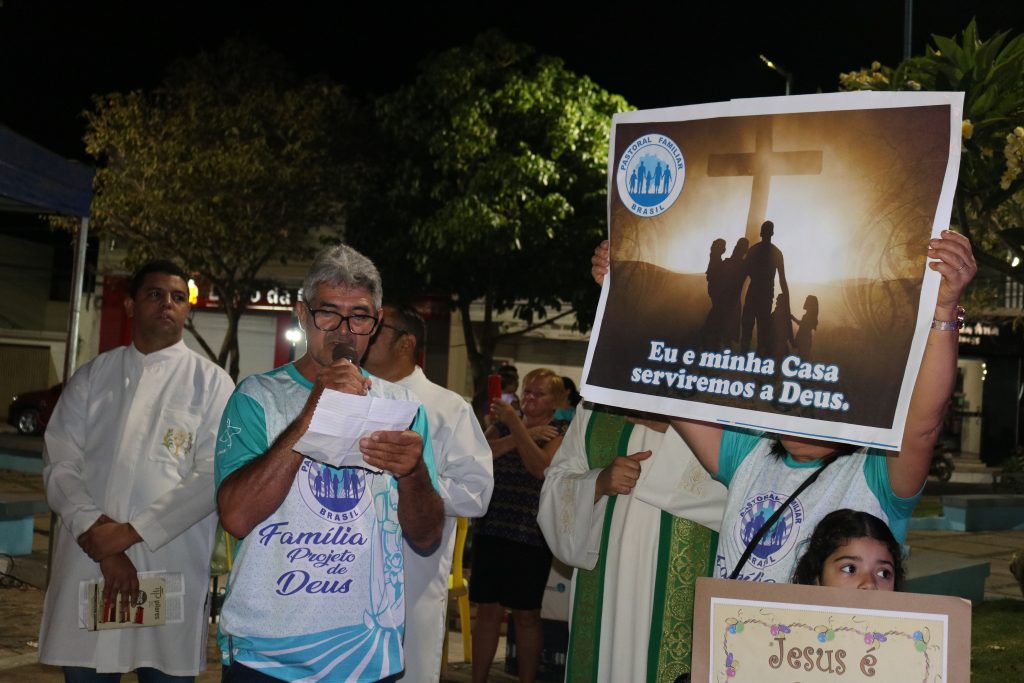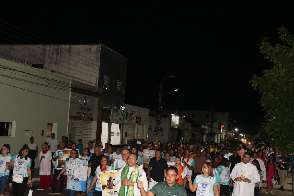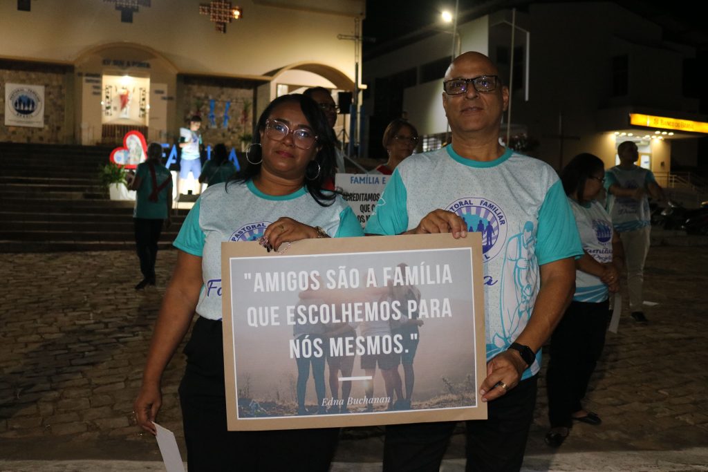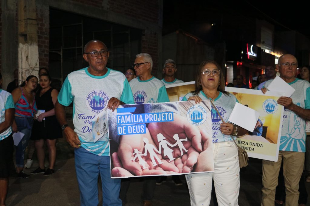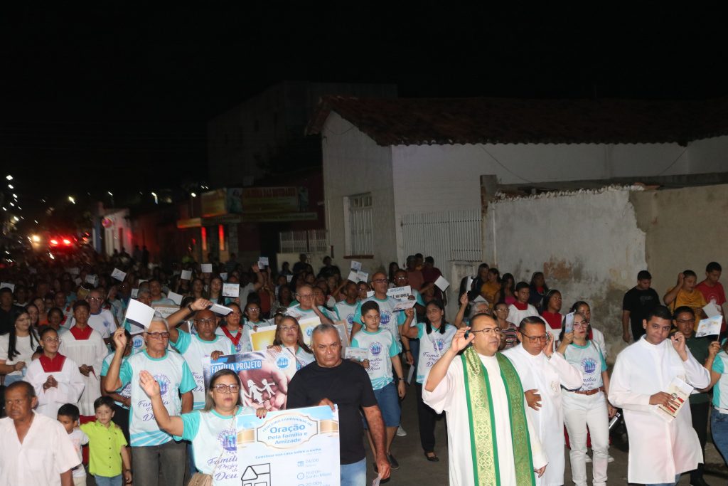 Após a missa, o Padre Kleyton, coroinhas, Ministros Extraordinários da Santa Comunhão, membros da Pastoral da Família e fiéis seguiram em caminhada pelas ruas do centro da cidade.