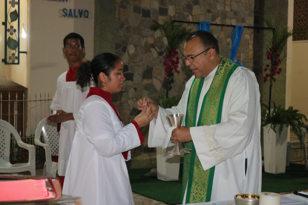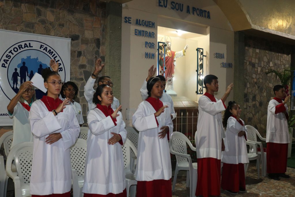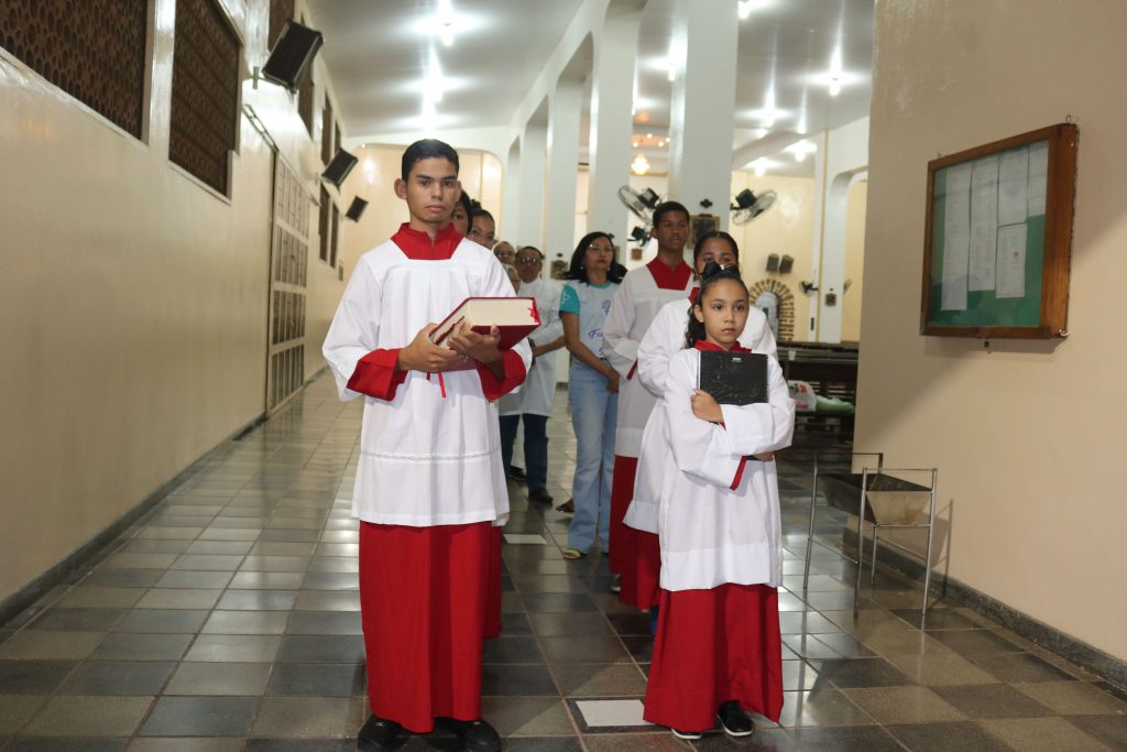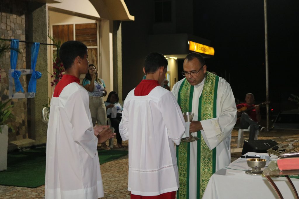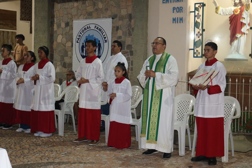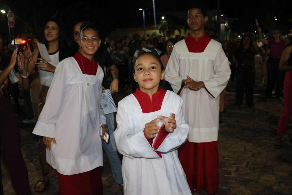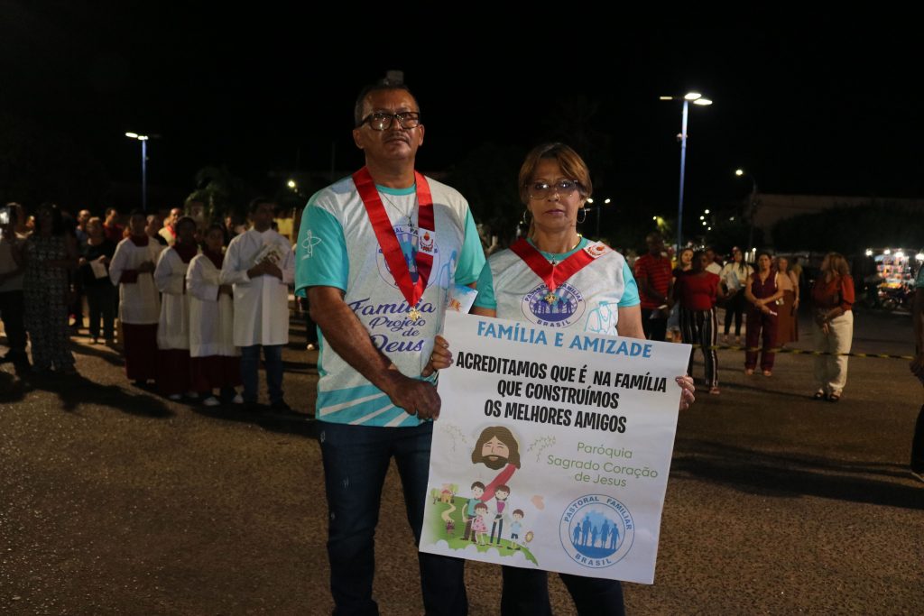 Após a missa, o Padre Kleyton, coroinhas, Ministros Extraordinários da Santa Comunhão, membros da Pastoral da Família e fiéis seguiram em caminhada pelas ruas do centro da cidade.