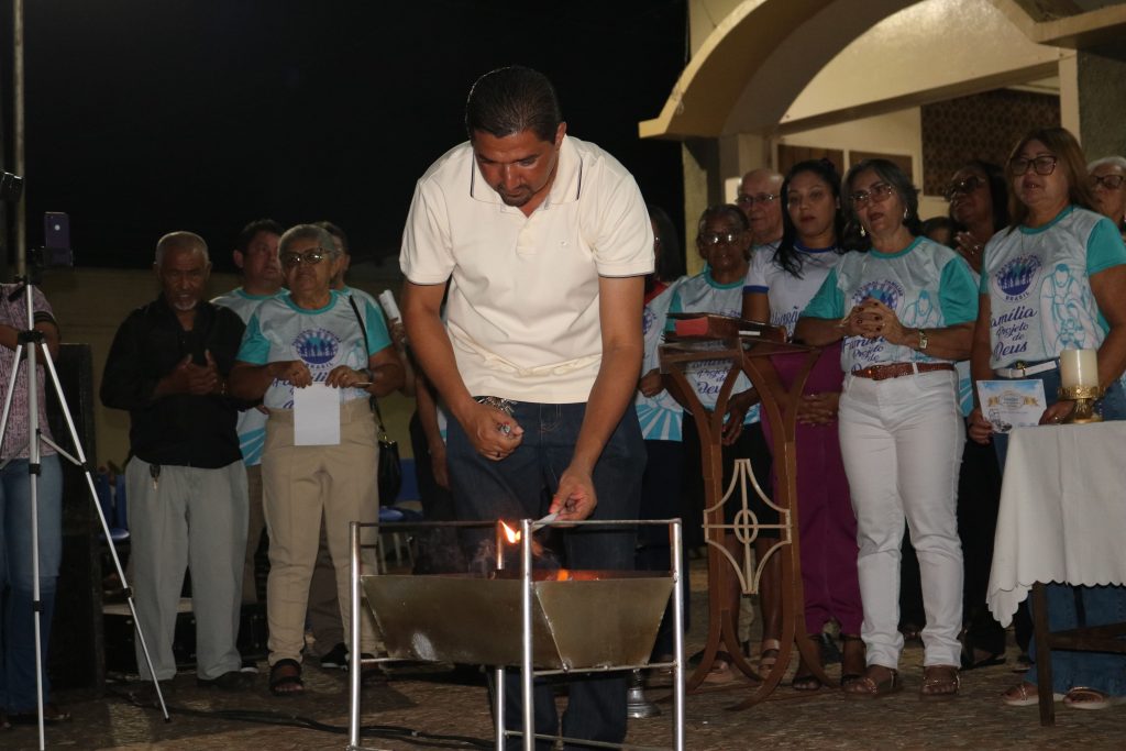 Antes da bênção final, pedidos escritos em papel pelas famílias foram incinerados, simbolizando a entrega das súplicas ao nosso Deus Criador e Pai Celestial.