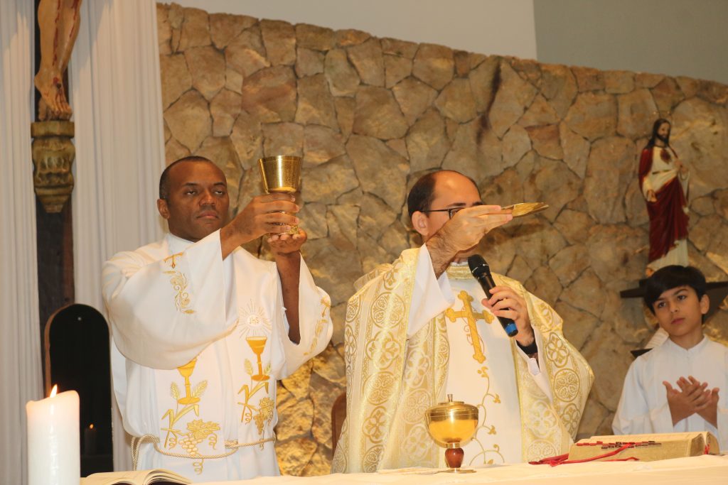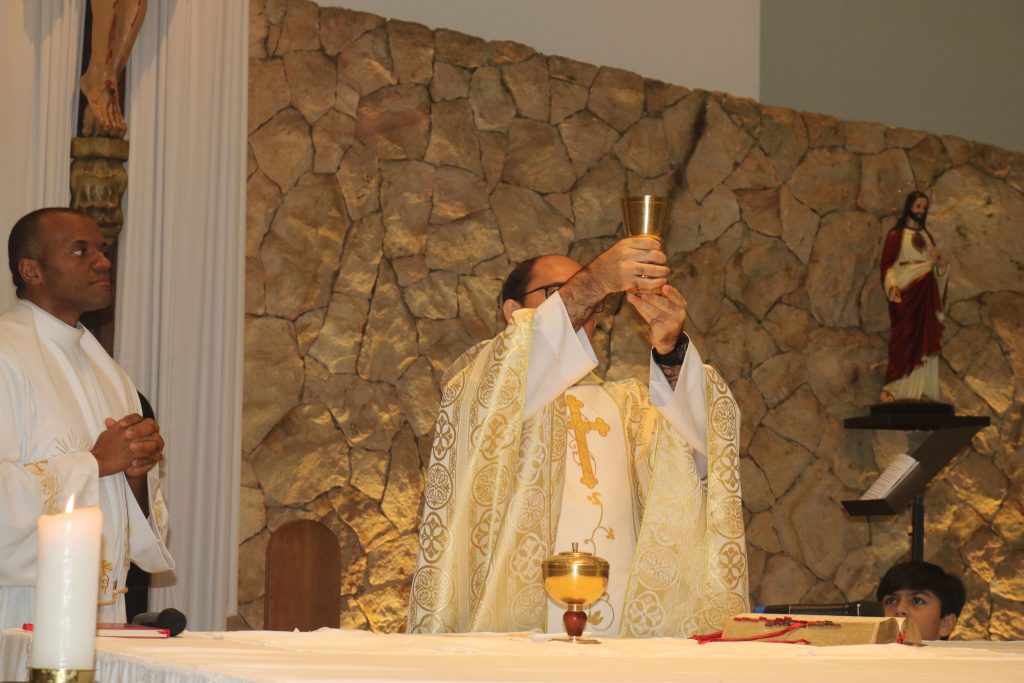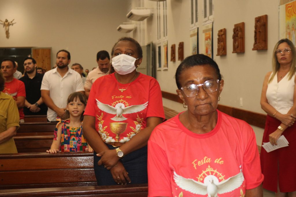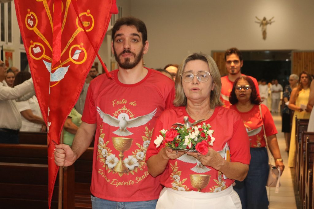 A missa foi presidida pelo padre Welson Barbosa, tendo como concelebrante o padre Nailson Silva. Este ano, a festa do Divino é organizada pela família de Maria de Lourdes Morais, que conduziu a procissão de entrada levando a imagem e a bandeira do Divino Espírito Santo, seguida por ministros extraordinários da Sagrada Comunhão e pelos celebrantes.