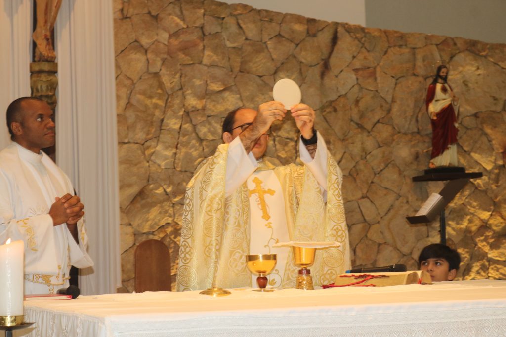 Após a missa, os participantes se dirigiram ao salão paroquial, ao lado da igreja, onde foi realizado um animado leilão. Em seguida, a noite foi encerrada com o show do cantor Michel Paiva, que apresentou um repertório variado e bastante elogiado pelo público presente.