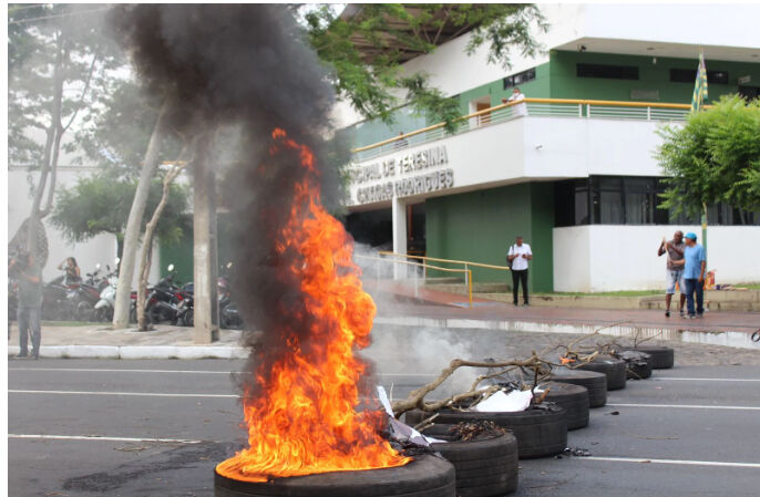 Integrantes do Sindicato dos Trabalhadores em Empresas de Transportes Rodoviários no Estado do Piauí (Sintetro) interditaram uma das vias da Avenida Marechal Castelo Branco usando pneus e galhos queimados.  A categoria critica uma suposta orientação feita pela Superintendência Municipal de Transportes e Trânsito (Strans) que teria proposto ao Sintetro a demissão em massa de funcionários para adaptação às novas licitações de empresas de ônibus.