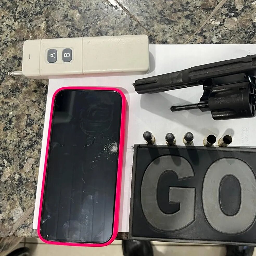 De acordo com o comandante, o suspeito só parou o carro depois de perceber que a passageira foi atingida. Ele foi preso com um revólver 38 com cinco munições, duas deflagradas, e um bloqueador de sinal de veículos, e encaminhado para a Central de Flagrantes.