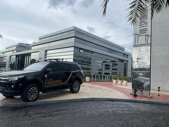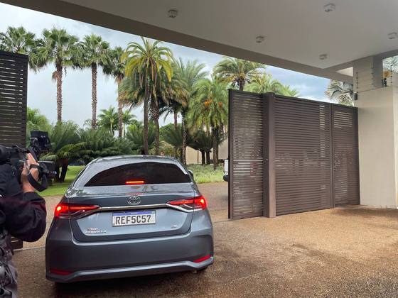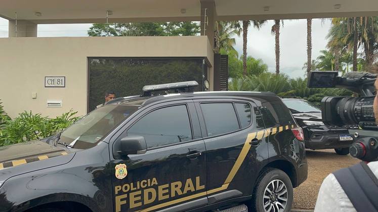 Carro da Polícia Federal saindo da casa de Ibaneis Rocha