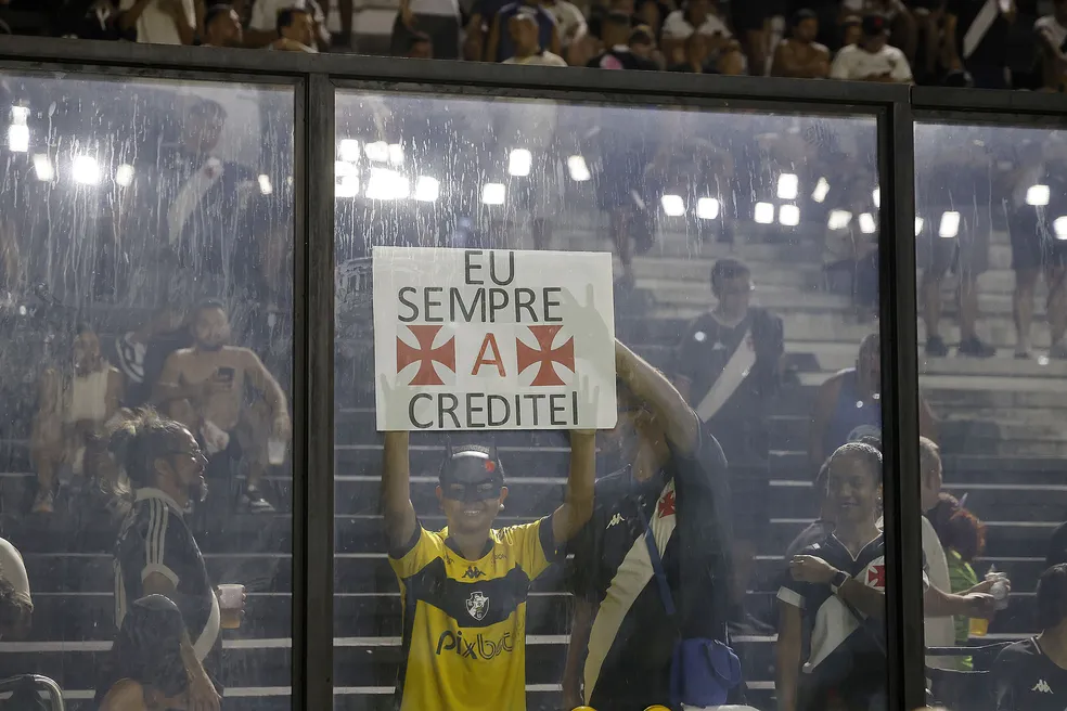 Cartaz com frase de Ramón Díaz no Vasco — Foto: André Durão / ge