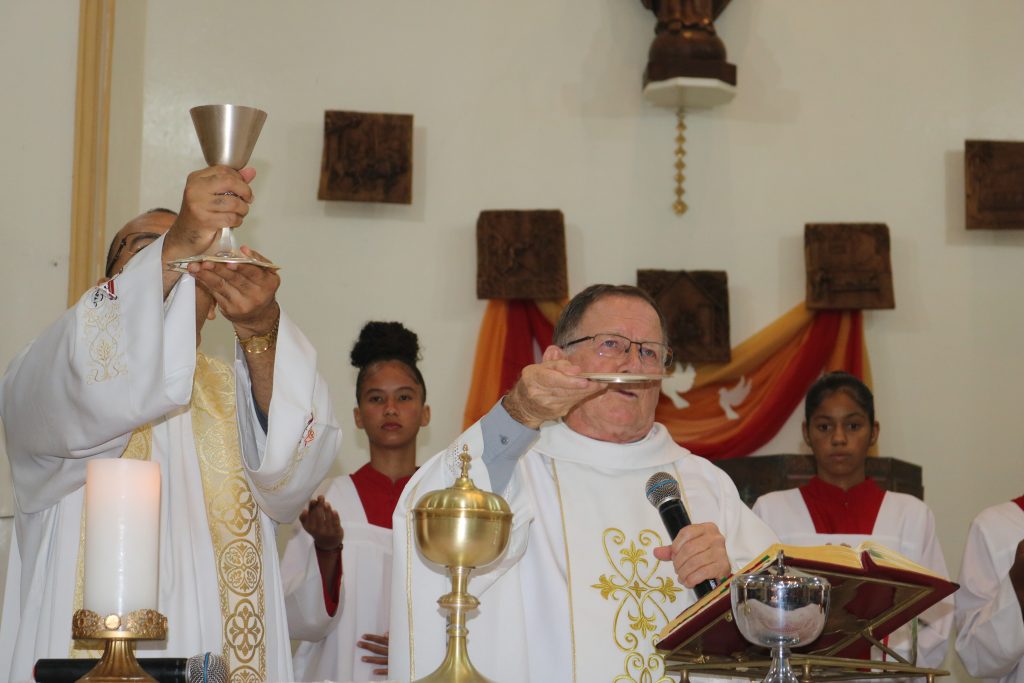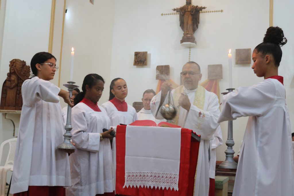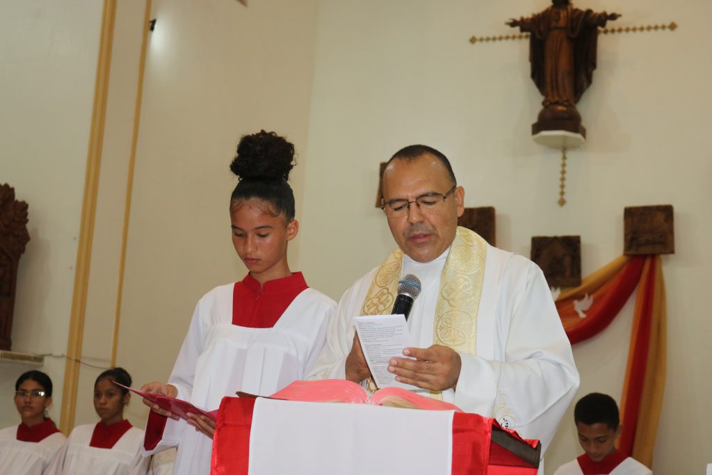 A missa foi concelebrada pelo Pároco local, Padre Kleyton Vieira.