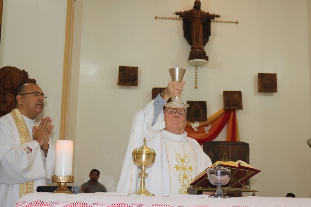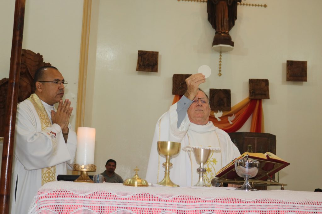O Padre Argemiro Ferraccioli coordenador nacional do Terço dos Homens presidiu a missa do segundo dia da novena do Divino Espírito Santo na igreja matriz na cidade de Simplício Mendes na noite deste sábado (20).
