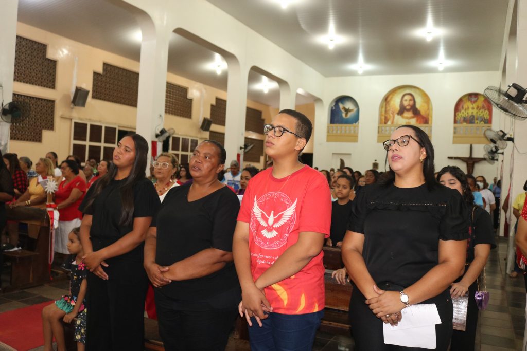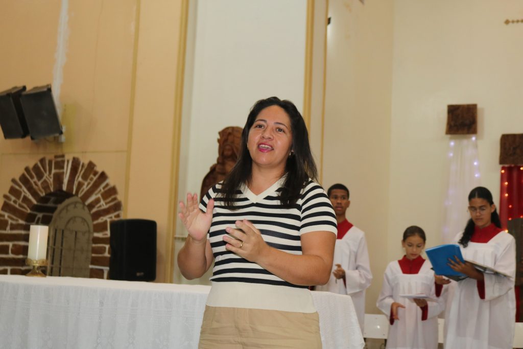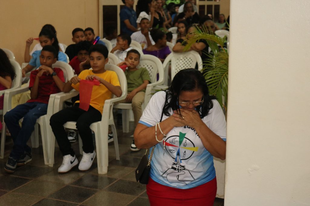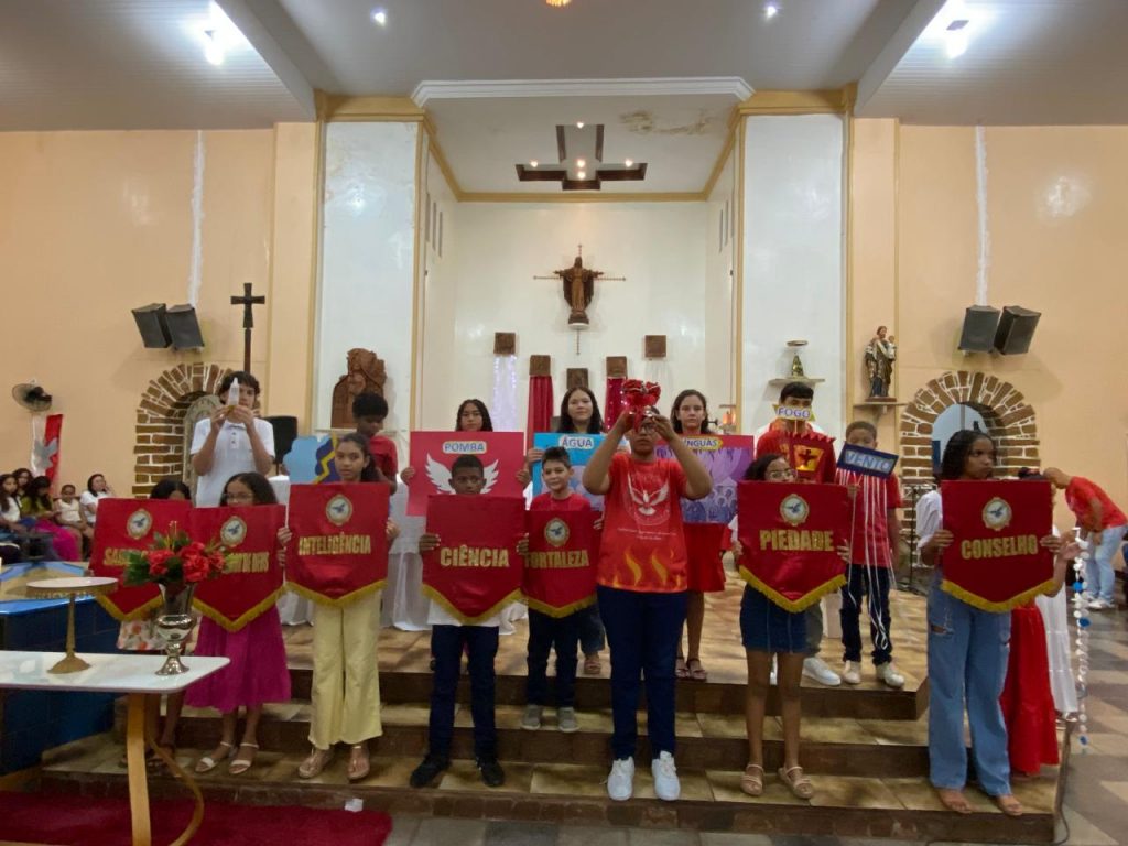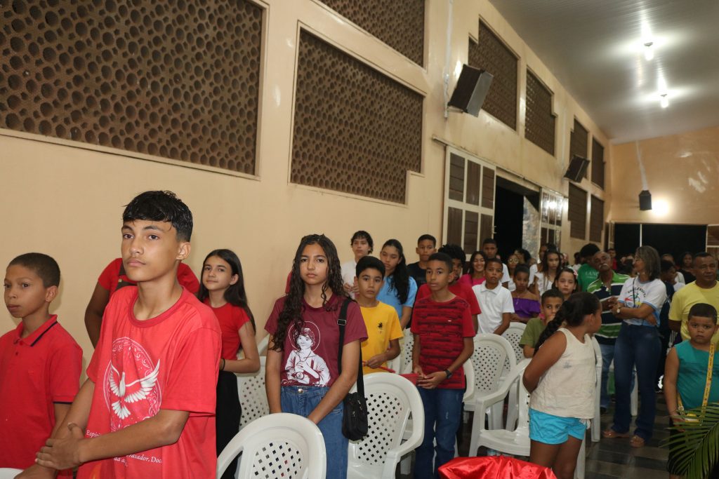 Após a comunhão, os presentes foram agraciados com uma apresentação comovente. Crianças da catequese e jovens que se preparam para o sacramento do crisma realizaram uma performance que tocou os corações de todos. Foi um espetáculo que evidenciou a dedicação e o talento dos jovens da comunidade.