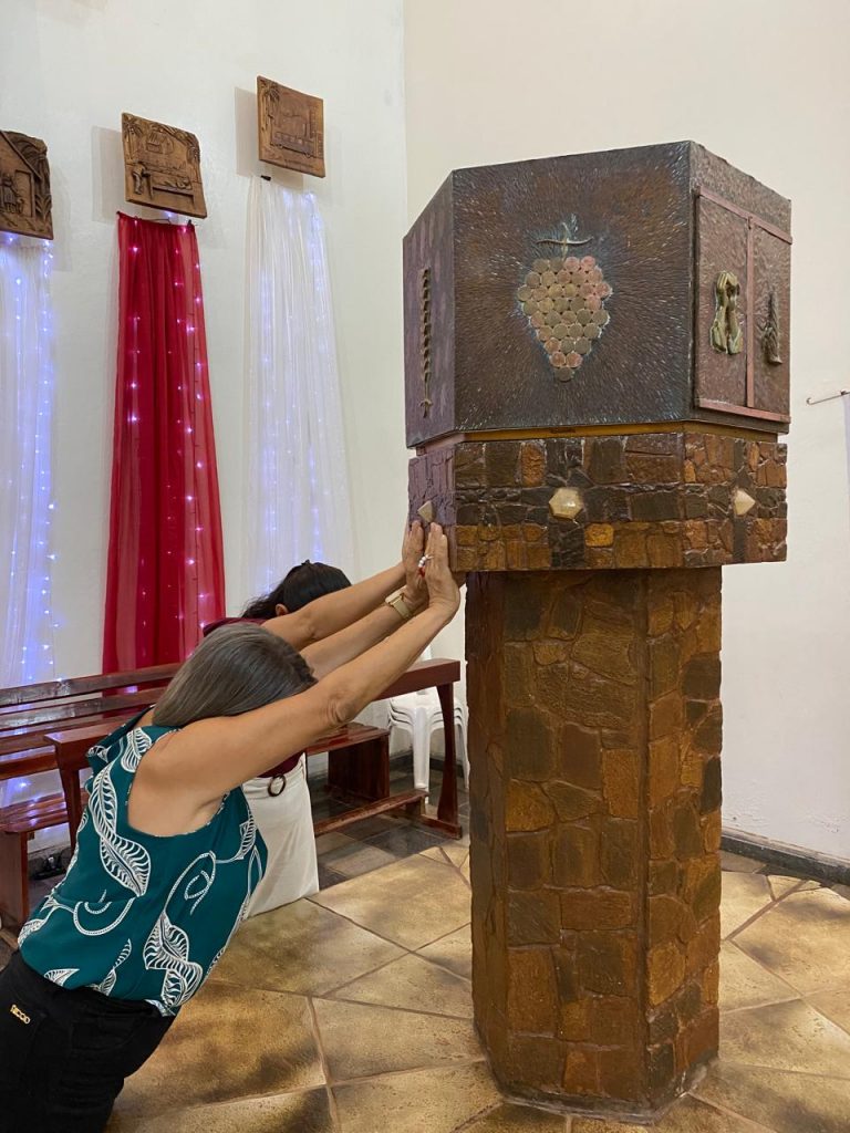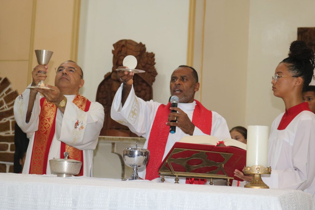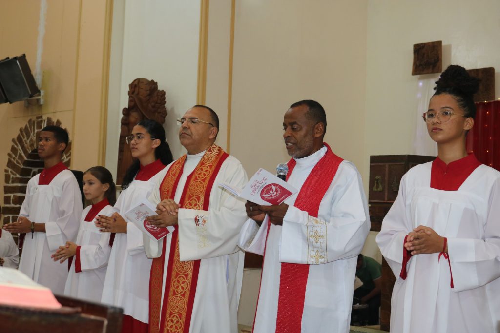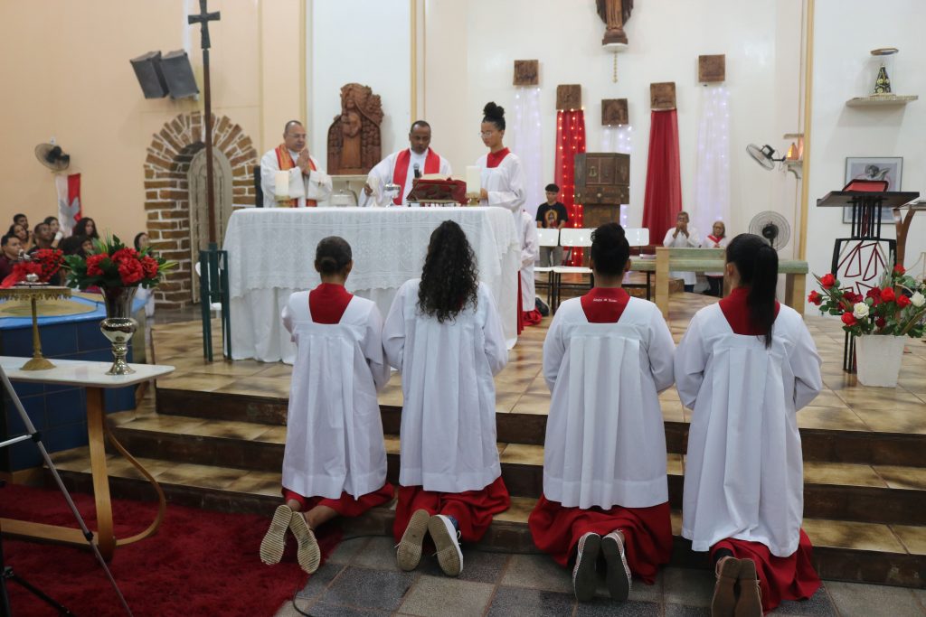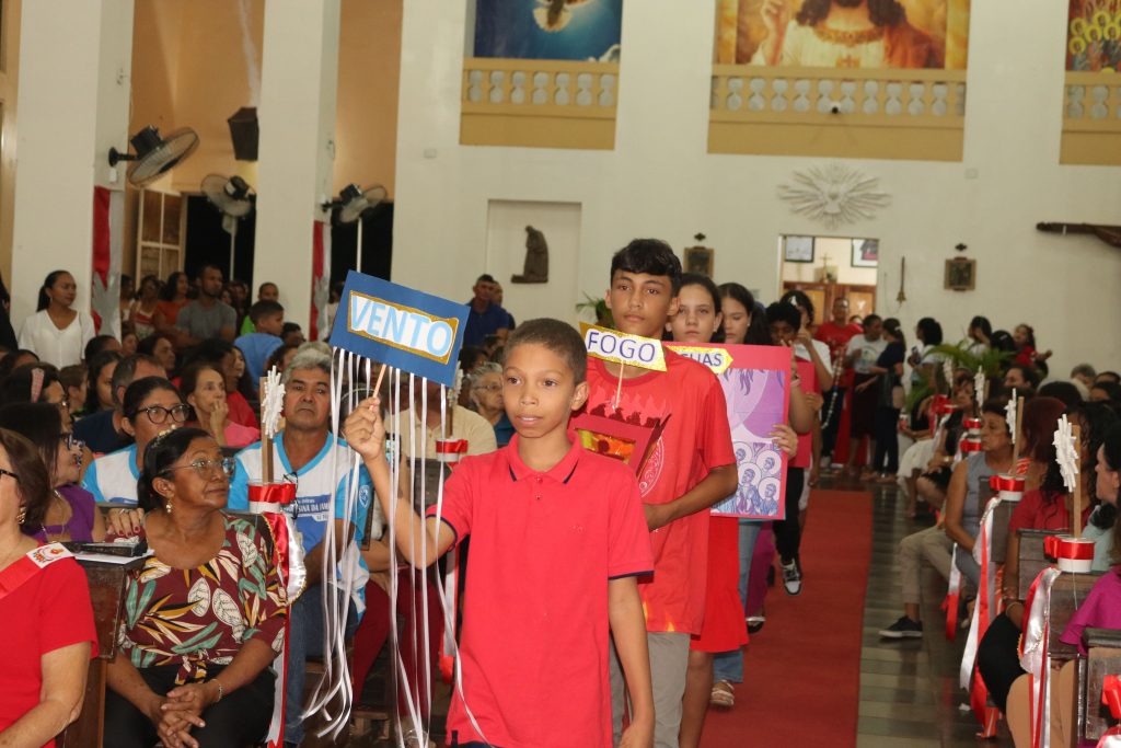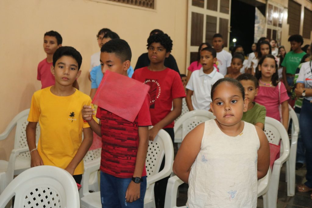 Após a comunhão, os presentes foram agraciados com uma apresentação comovente. Crianças da catequese e jovens que se preparam para o sacramento do crisma realizaram uma performance que tocou os corações de todos. Foi um espetáculo que evidenciou a dedicação e o talento dos jovens da comunidade.